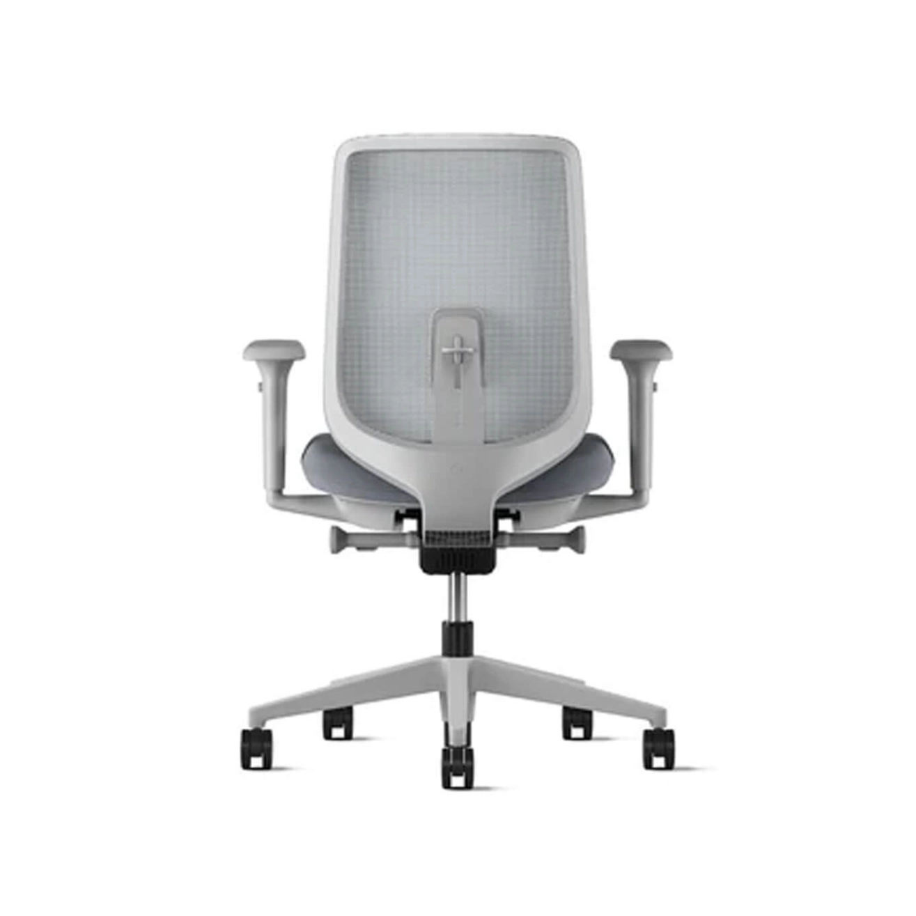 The Verus Suspension office chair in Iceberg/Rhino finish, designed by Yves Béhar and produced by Herman Miller, combines ergonomic performance and functional design in an accessible format. Built to deliver reliable support throughout the day, Verus features a breathable suspension back that flexes with your movements, along with an adjustable seat depth and a synchronous tilt mechanism with tilt limiter and forward tilt option. Fully adjustable armrests, a black chassis with standard base, and casters suitable for both hard floors and carpets make this chair a complete ergonomic solution without compromising aesthetics. Clean and versatile, the Verus Suspension office chair meets the demands of modern workspaces while embracing the sustainable design values championed by Herman Miller.