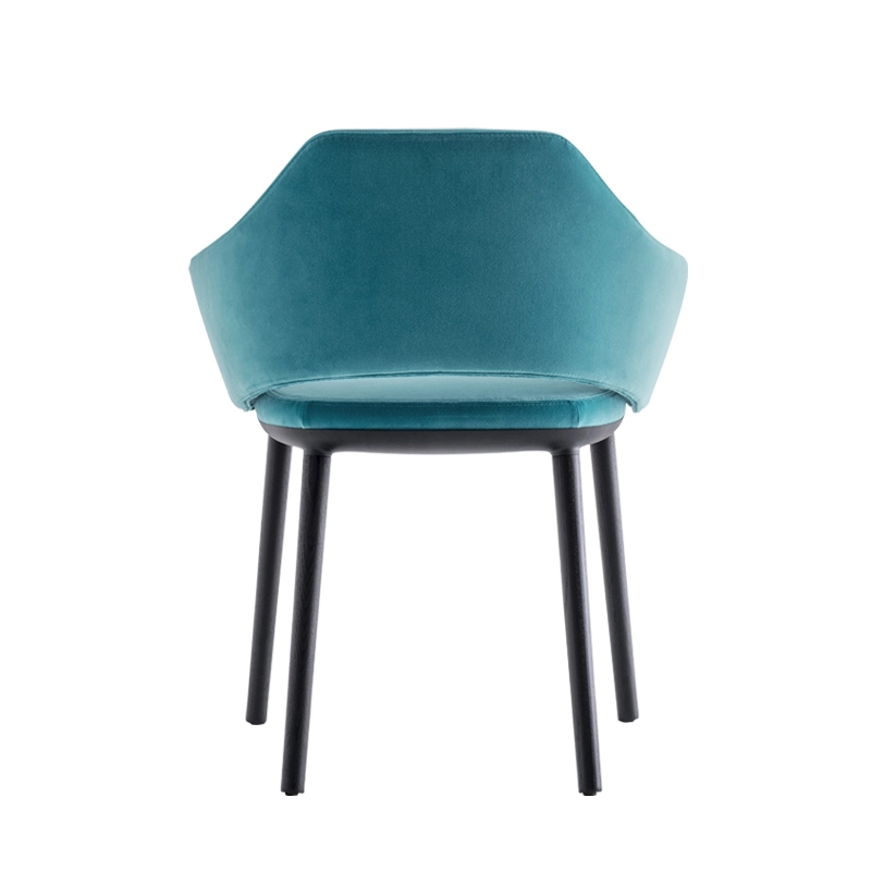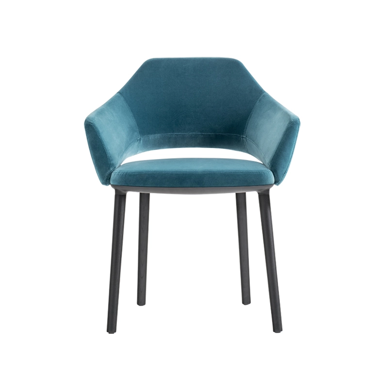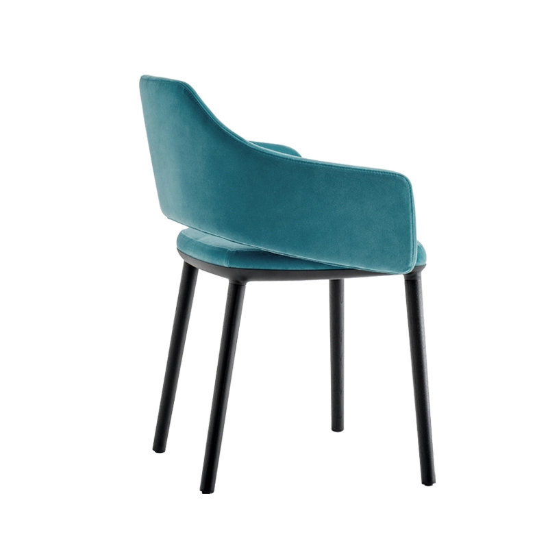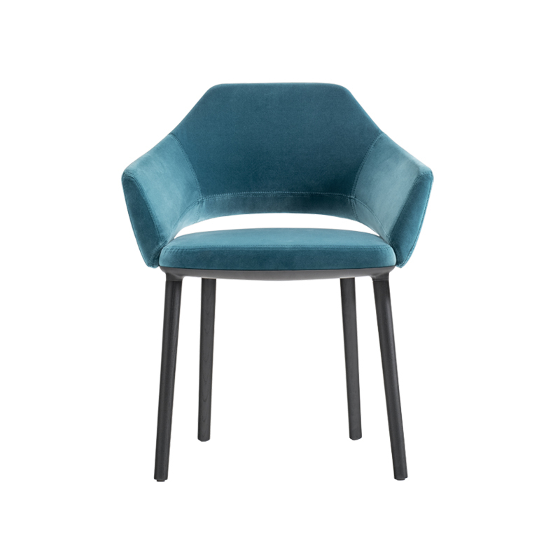 Vic is a collection of upholstered seats that are enveloping and elegant in their simplicity. Inspired by classic shapes, the collection is distinguished by its backrest, attached to the seat only at the ends, creating an opening that gives a feeling of lightness and makes it easy to move the chair. In the small armchair version, the solid ash legs lighten the silhouette while providing a sturdy base. The