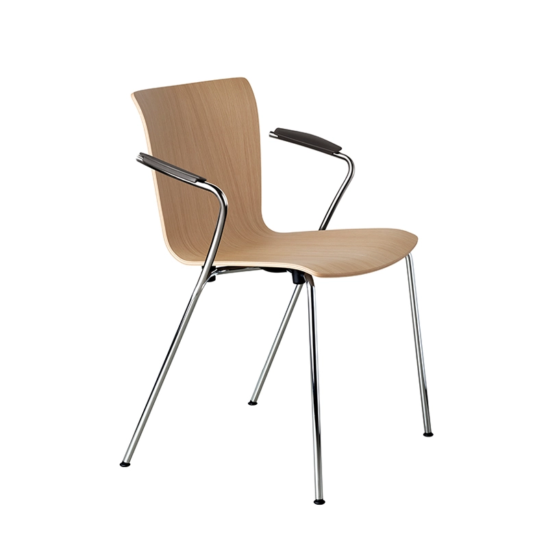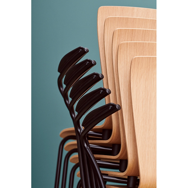 Fritz Hansen reissues the Vico Duo chair to mark Vico Magistretti's 100th birthday. The designer conceived this chair in 1997, sitting around his sketches in Fritz Hansen's dedicated design department. He wanted to collaborate with the brand, to benefit from its expertise in veneer. The chair has a simple design with narrow lines. A freely drawn 'Z' line on the sketch inspired the back of the chair's armrests - an unusual element that intentionally balances the design. The armrests and the legs at the rear are made of a single piece of steel - another unique aspect of design. Fritz Hansen combines beauty and functionality with this elegant stackable veneer chair.