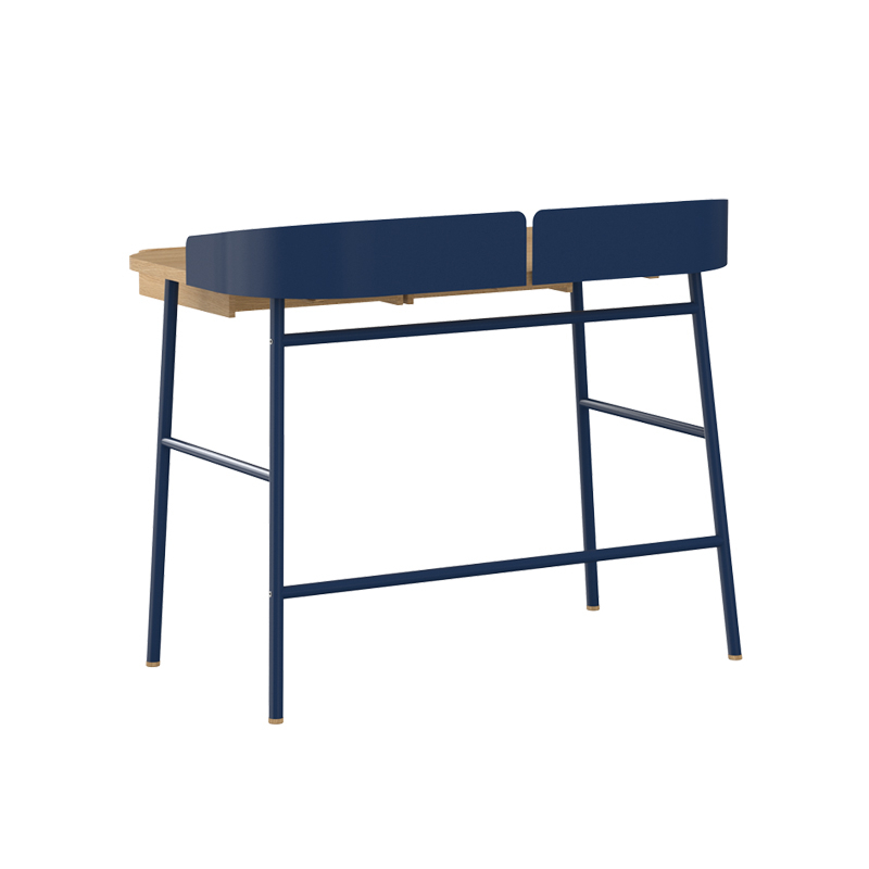 small desk. It has a light structure in lacquered metal, combined with an oak veneered MDF worktop. Highly functional,