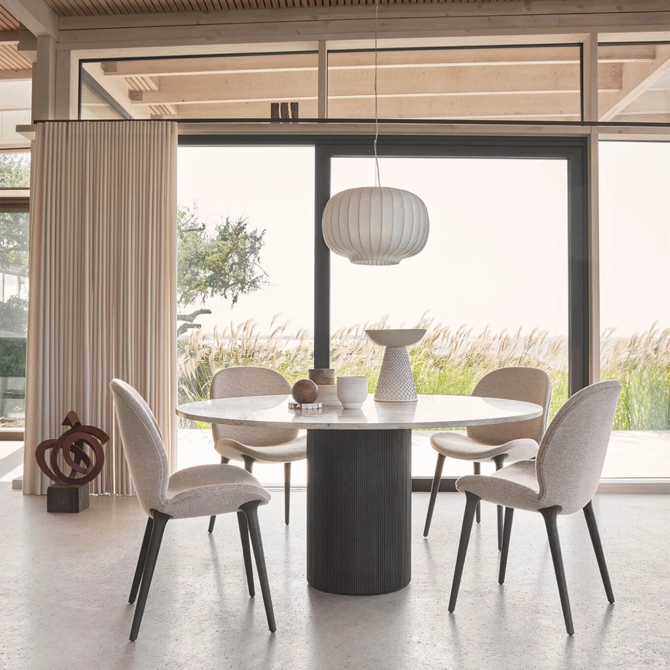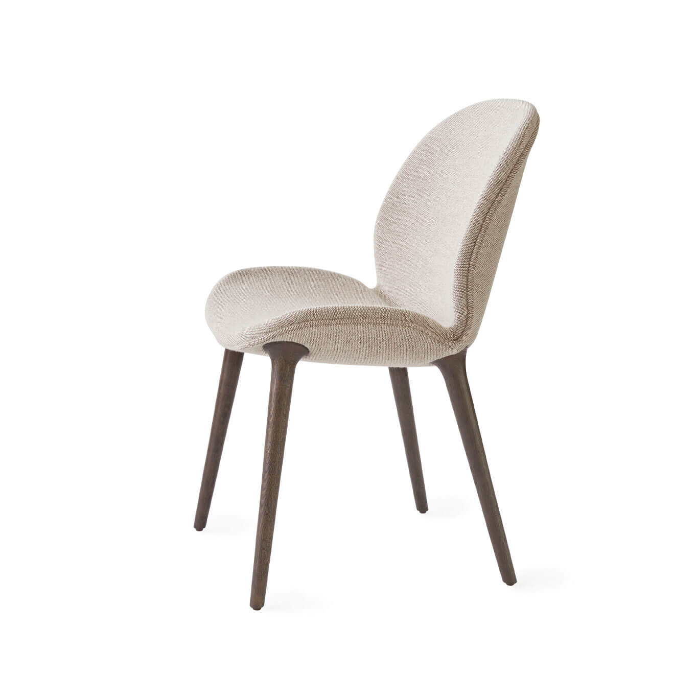 The Lodge Vipp chair is ideal for the dining room. This chair features an upholstered shell and solid oak legs. The Lodge chair Vipp is presented multiples upholsteries, with light or dark oak legs. The Lodge range is a collection of softly upholstered furniture, comprising a dining chair, a lounge chair and a footrest. The Lodge collection was created to mark the opening of Vipp Lodge, the fourth hotel room in the Vipp brand's range of destination hotels.