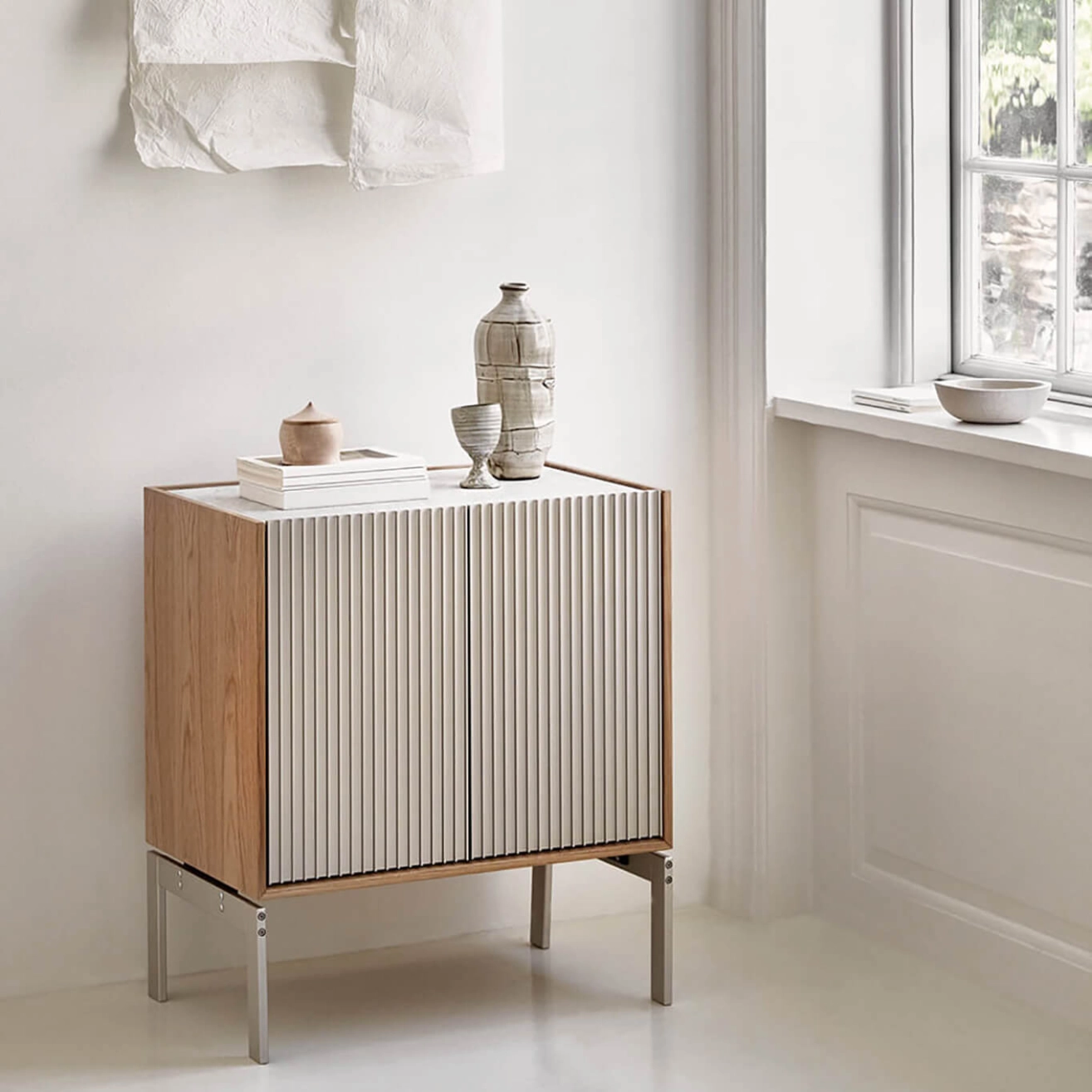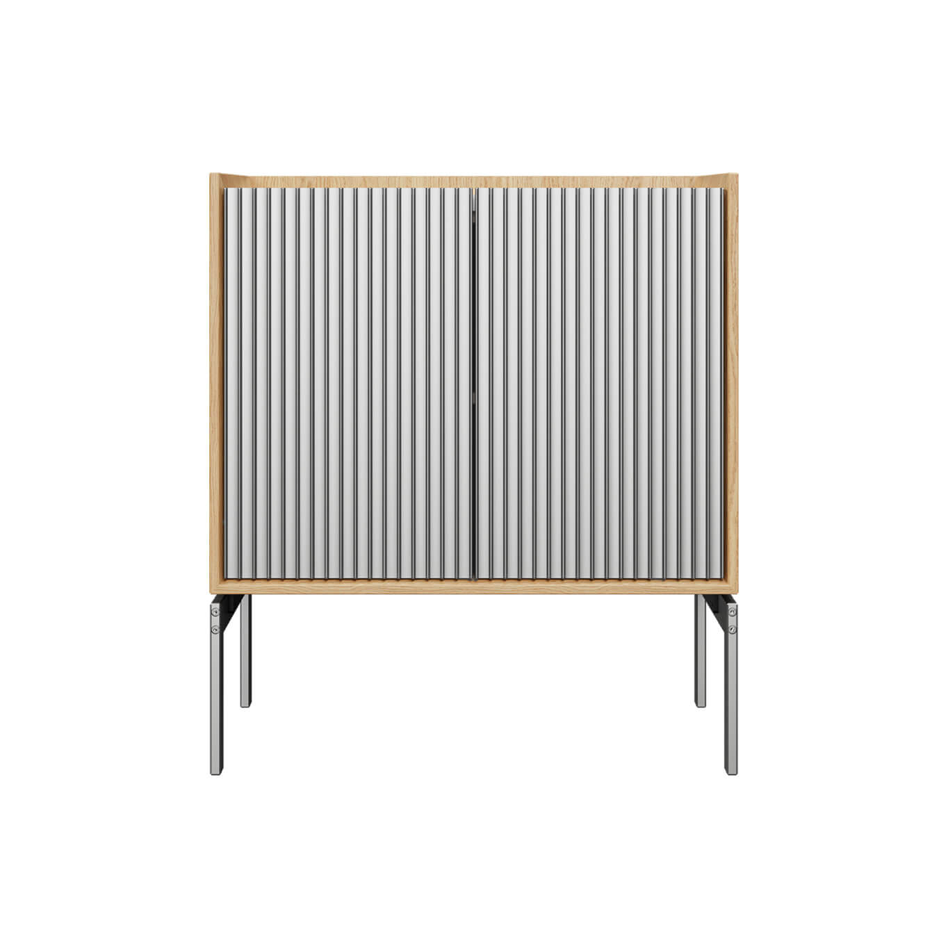Light oak case, light anodized aluminum door, and Sky Grey marble top