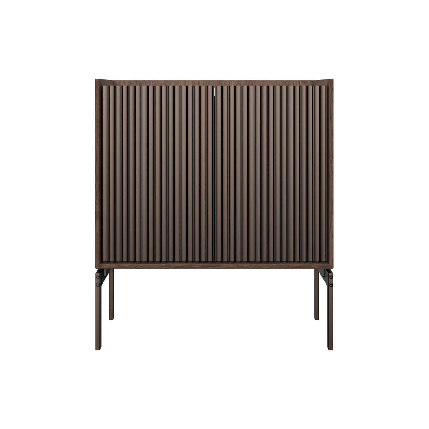 The VIPP675 Cabinet H2 L 60 by Vipp is a versatile and sculptural piece, ideal as a nightstand, hallway storage unit, or side table next to a sofa. This compact yet tactile cabinet is made from three high-quality materials: marble, anodized aluminum, and oak. The marble top of the VIPP675 Cabinet H2 L 60 by Vipp, available in dark Pietra Grey or light Sky Grey marble, incorporates an almost tray-like function. Behind the reeded aluminum doors of the H2 Cabinet, you'll find an adjustable shelf. The vertically extruded aluminum doors of the VIPP675 Cabinet H2 L 60 are slightly elevated above the marble top and serve as a grip for opening the cabinet.