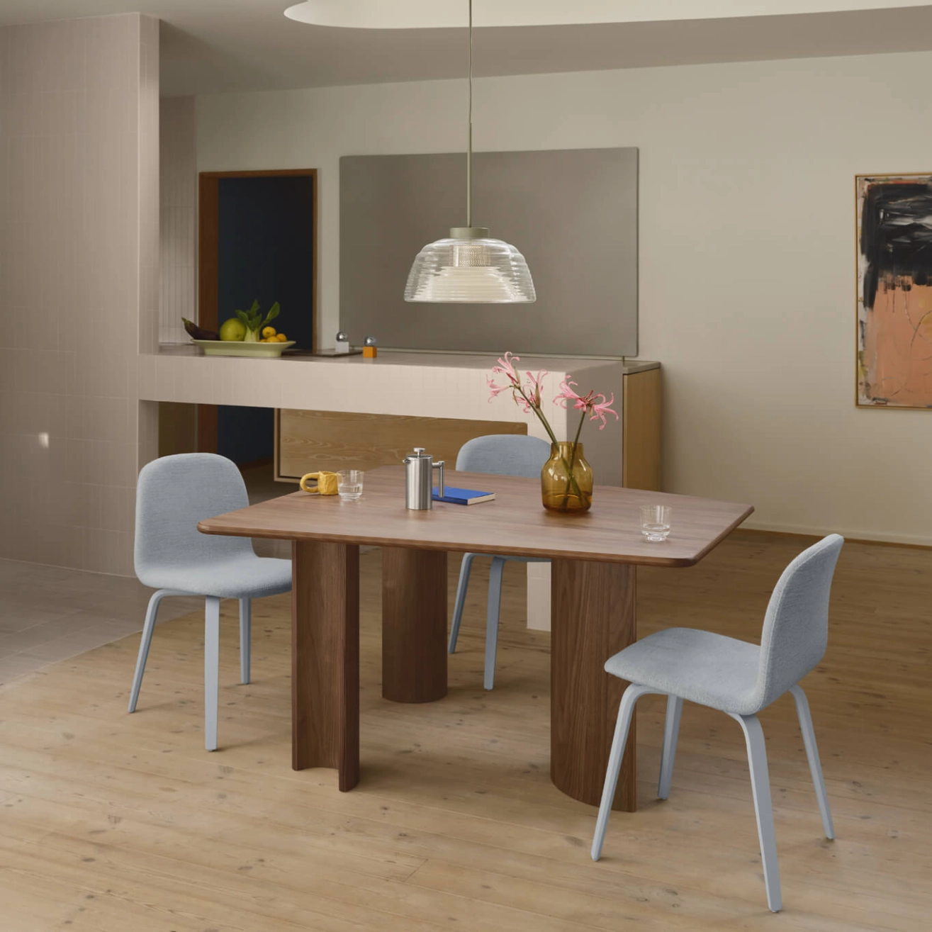 The Visu chair takes its name from the Finnish word for "precision." Imagined by designer Mika Tolvanen, it is the result of a meticulous two-year design process aimed at perfecting every curve for absolute comfort. This quest for precision makes the Visu a seat that is both familiar and resolutely modern. Produced by the Danish house Muuto, this piece perfectly illustrates the brand's philosophy: bringing a new perspective to Scandinavian design. The structure, often available in oak or ash wood, bears witness to Muuto's manufacturing quality. Whether used around a dining table or in a workspace, the Visu adapts with elegance to all uses thanks to its timeless silhouette.