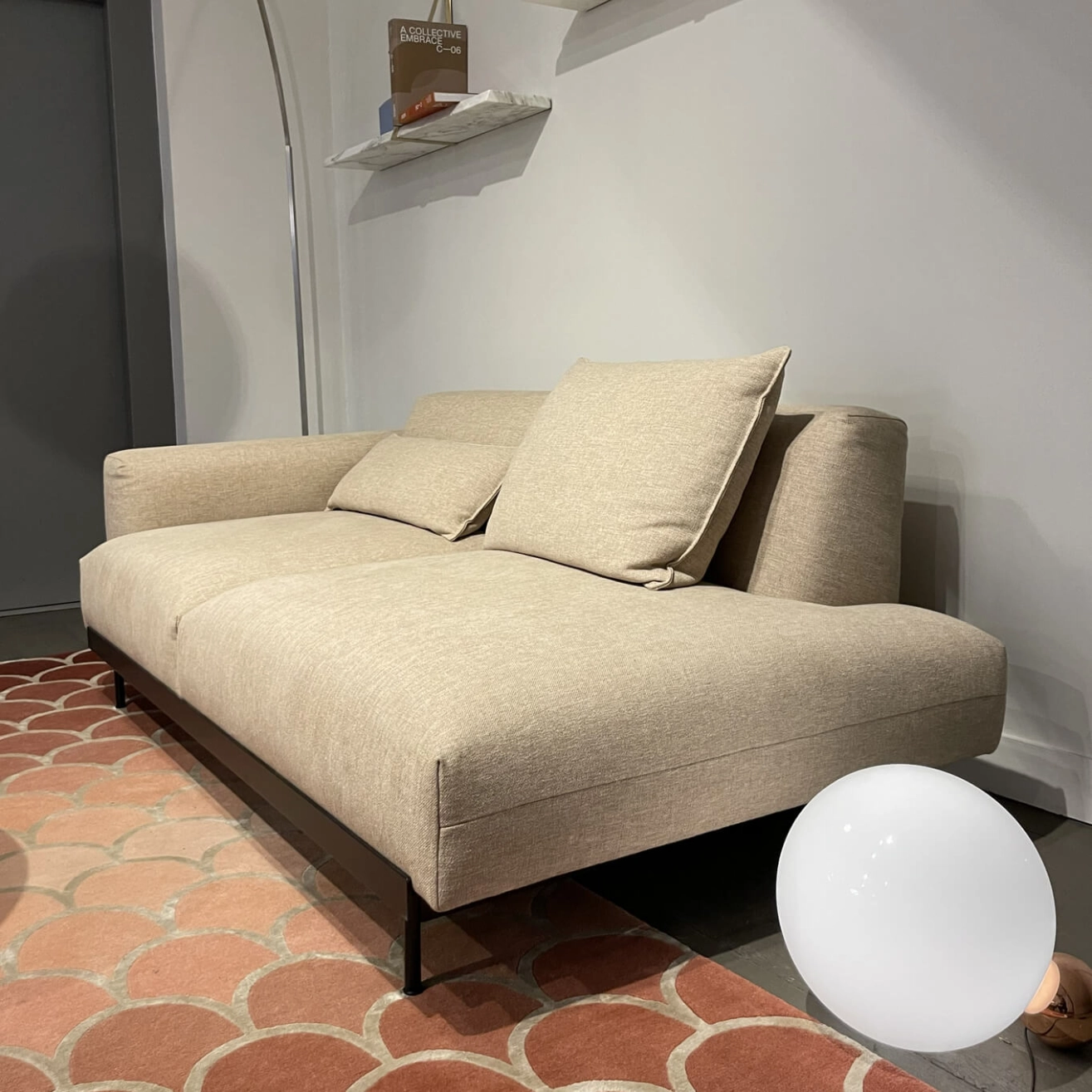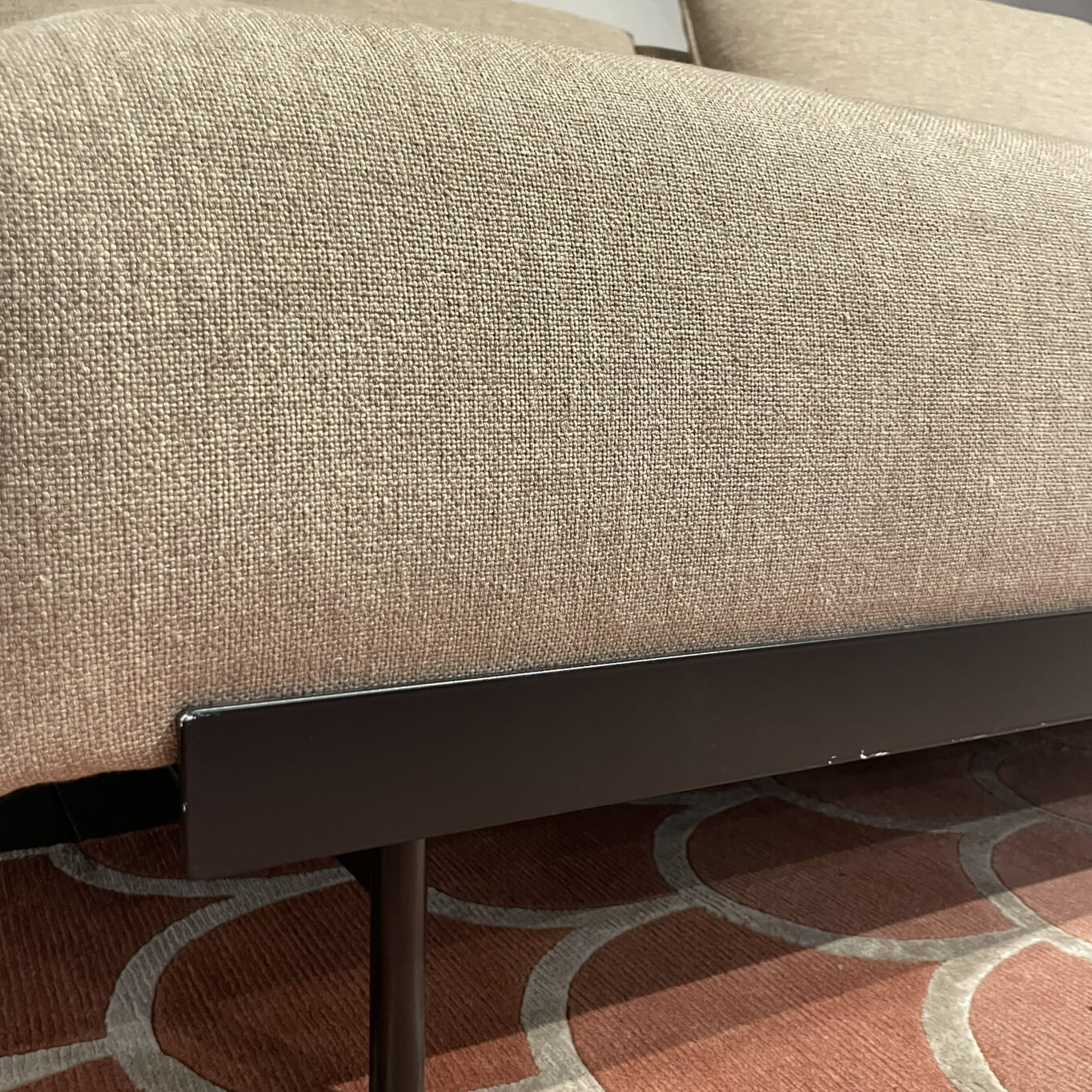 In Situ sofa becomes the centerpiece of any environment while enhancing it with its modern style. Please note that some signs of wear are visible on the sofa’s metal frame.