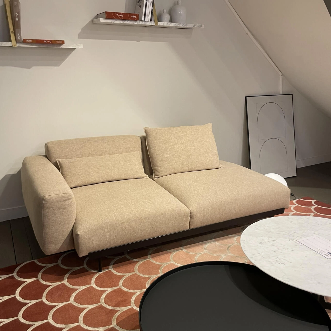 In Situ sofa allows users to create their own configuration to meet the aesthetic and functional needs of their space, whether in a home, a reception area, or a workspace. With its high level of comfort, sculptural lines, and subtle detailing, the pre-owned modular