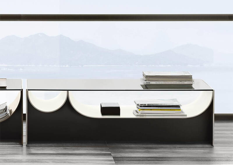 Waves can be placed alongside other identical tables to form a modular sequence playing on transparency, voids and the lightness of lines.