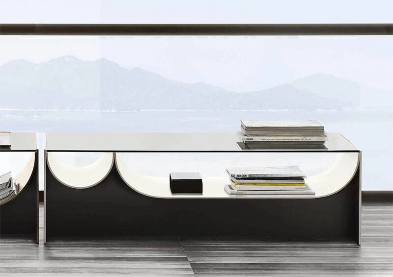 Referring to the waves of the ocean, the Waves coffee table features a grey smoked glass top supported by a painted aluminium structure - coul ... Learn more