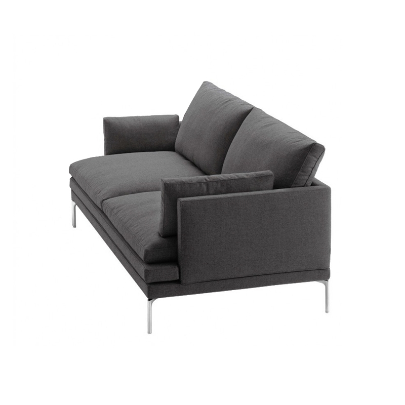Designed in 2010 by Damian Williamson, the William sofa has become a classic for the Zanotta brand in a short space of time. Built to last, William combines exceptional comfort with an attractive design.With its clean lines and light silhouette, this sofa will fit into any interior. William has a removable leather or fabric cover and a steel base. The seat upholstery is made of heat-bonded polyurethane/polyester fibre. The back and armrests are made of self-extinguishing polyurethane foam/heat-bonded polyester fibre. The seat and back cushions are stuffed with goose feathers. With its wide choice of sizes and finishes, William by Zanotta will suit any contemporary living room.