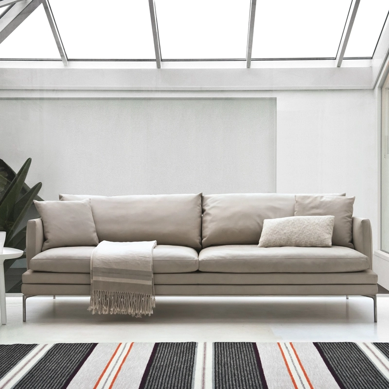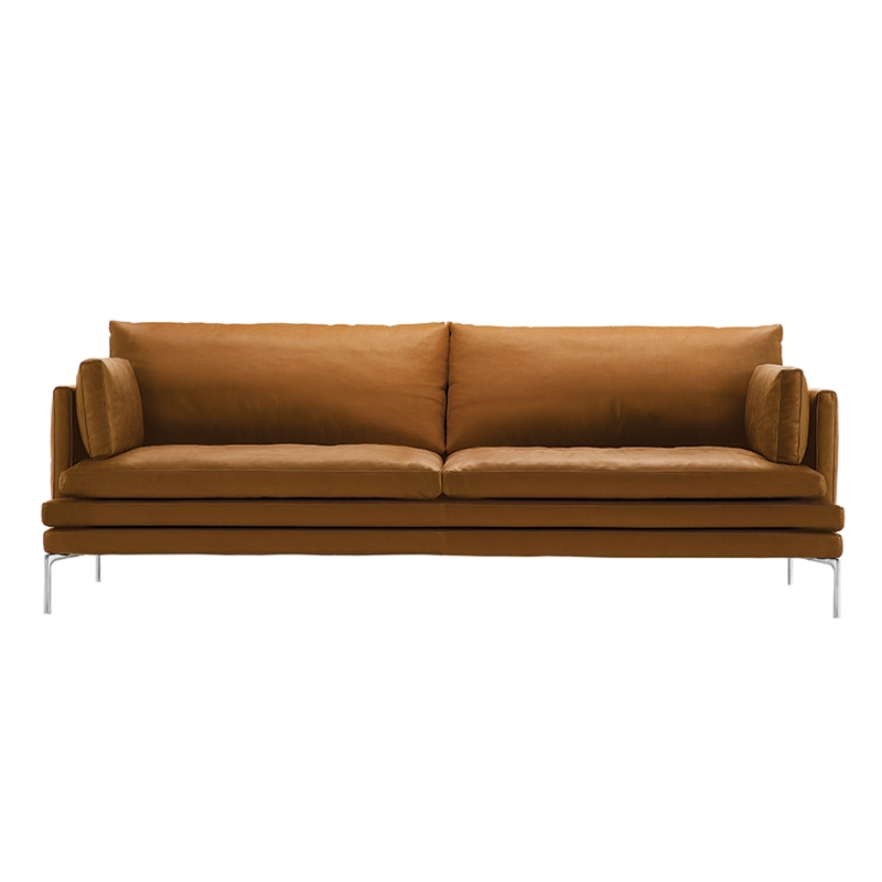 Designed in 2010 by Damian Williamson, the William sofa has become a Zanotta classic in a short space of time. Built to last, William combines exceptional comfort with an attractive design.With its clean lines and light silhouette, this sofa will fit into any interior. William has a removable leather or fabric cover and a steel base. The seat upholstery is made of heat-bonded polyurethane/polyester fibre. The back and armrests are made of self-extinguishing polyurethane foam/heat-bonded polyester fibre. The seat and back cushions are stuffed with goose feathers. With its wide choice of sizes and finishes, William by Zanotta will suit any contemporary living room.