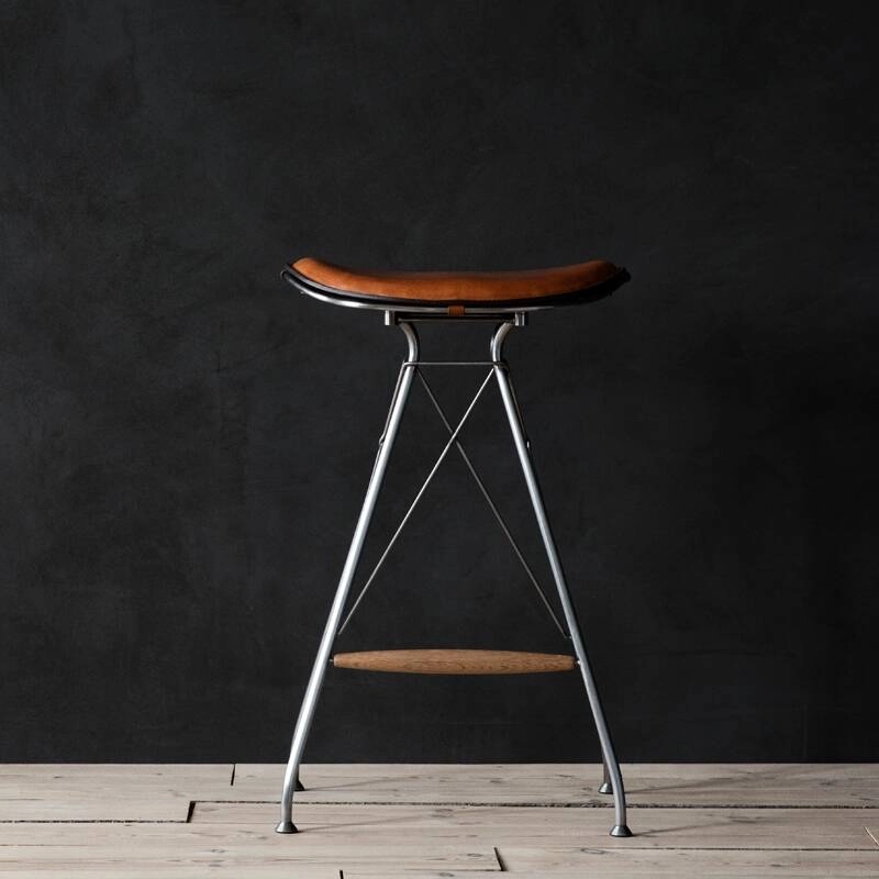 Produced by Overgaard & Dyrman, Wire is a seating collection that draws its inspiration from traditional horse saddle making and metalworking, and explores the contrasts between these two high quality materials. The Wire tall stool consists of a steel frame, available in satin chrome or black epoxy finish, and an aniline leather seat, with a natural texture that takes on a beautiful patina over time. Available in two heights, it fits perfectly in a kitchen, restaurant or bar. The Wire collection is manufactured in Denmark by skilled and dedicated craftsmen, who master remarkable craftsmanship in all stages of production.