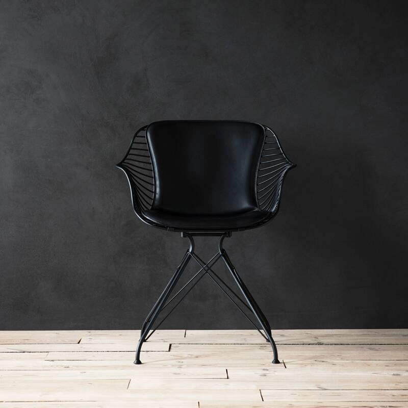 3. WIRE DINING CHAIR Black/ Elegance black leather
