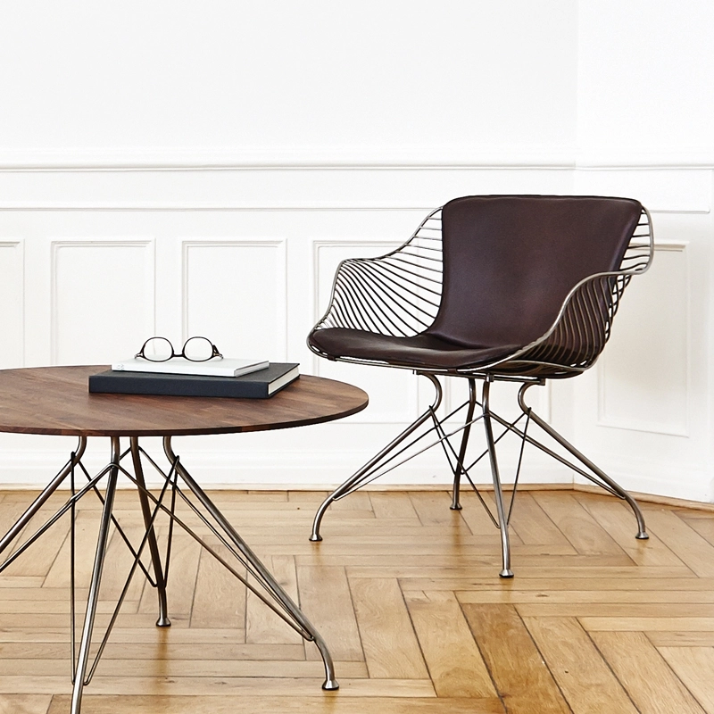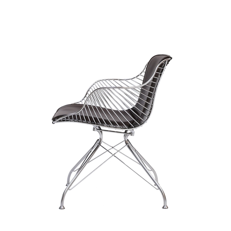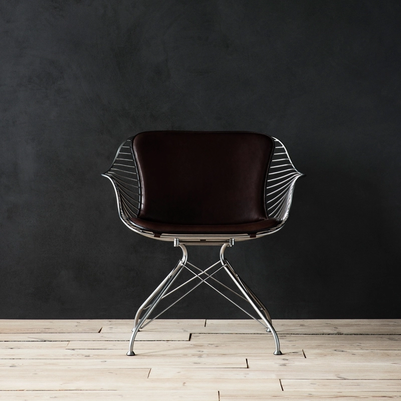 WIRE LOUNGE CHAIR Chrome/ Dark brown Elegance leather