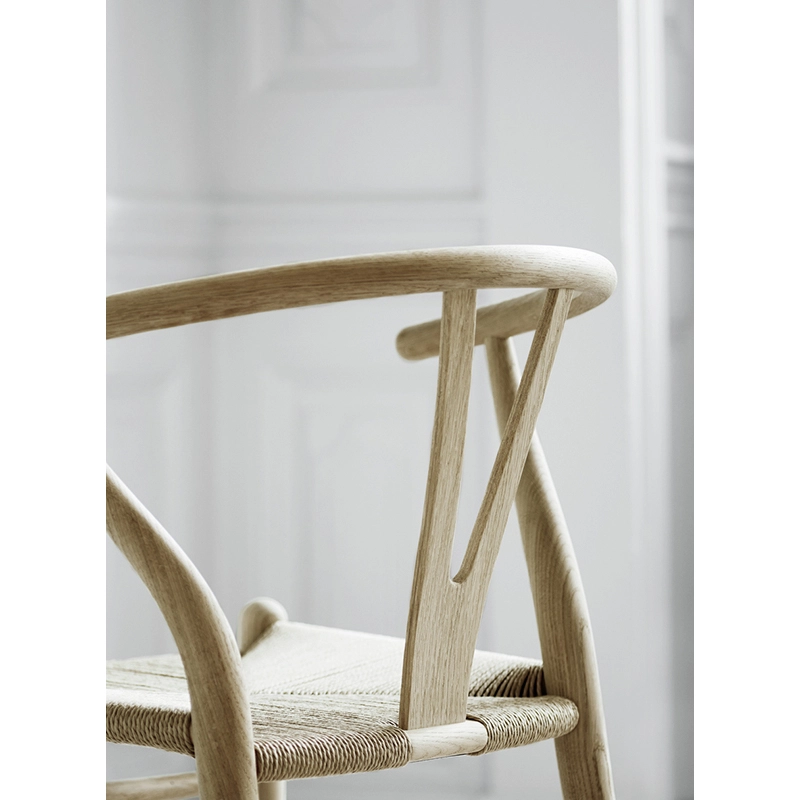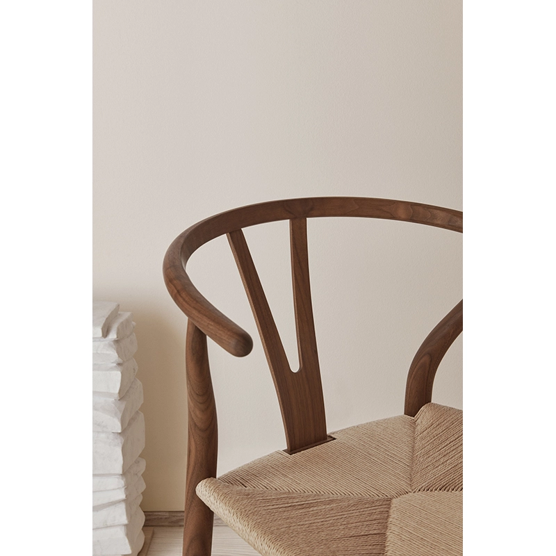 Wishbone CH24 chair for over half a century without interruption. The backrest bar is steam bended for optimum freedom of movement and comfort. Wegner chose to merge the backrest and armrest into a single piece. To stabilise the steam-curved top and provide comfortable support for the back, the designer developed the chair's characteristic Y-shaped support.