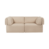 The Wonder Sofa is a contemporary reinterpretation of 1970s lounge furniture by Space Copenhagen for GUBI. Its designers have updated the informal, generous and playful character of the original modular sofa with an elegant and simple frame. The Wonder Sofa brings a sense of relaxation and accessibility to a hotel or lobby, or a touch of sophistication to a private residence. The infinite combinations of the 3 modules of the Wonder Sofa allow it to adapt to users' changing needs. As a stand-alone piece, in a group, back to back, side by side or in a row, the Wonder Sofa impresses with its distinctive design from every angle. The cushions on the Wonder Sofa fold gently over the clean, square lines of the backrest and are secured by hidden magnets. This softens the relationship between front and rear and creates a sense of sophistication and relaxed comfort in which playful exuberance meets measured simplicity.