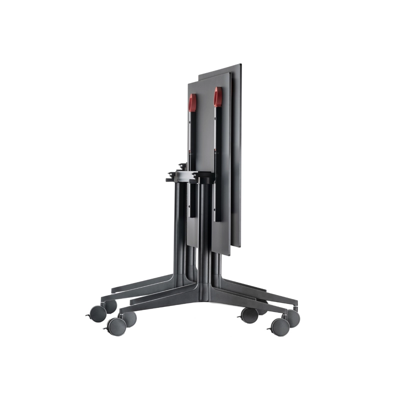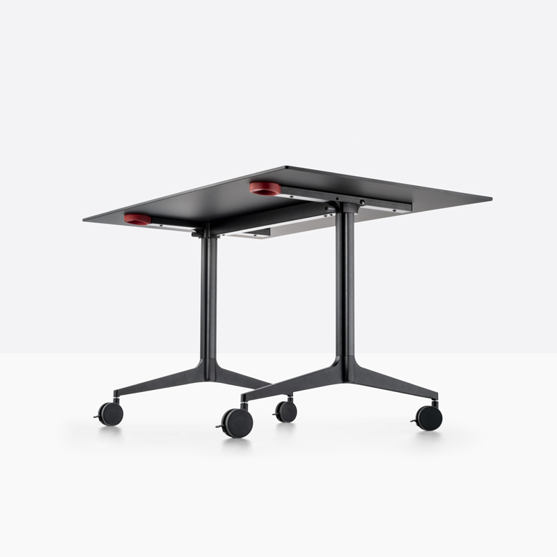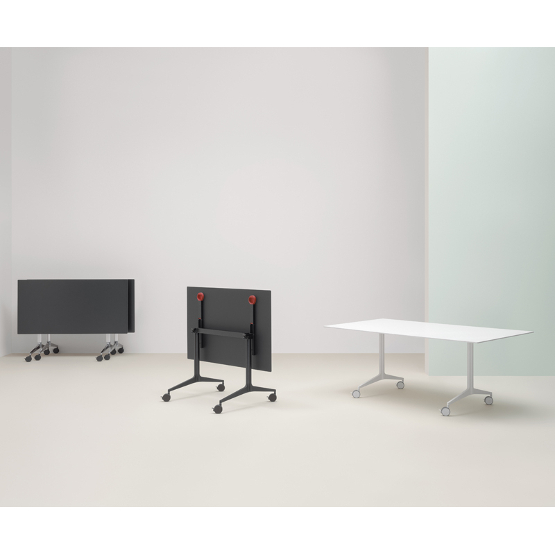 Ypsilon table top folds down easily, allowing one or more tables to be stored together with limited space. As sober as it is functional, the