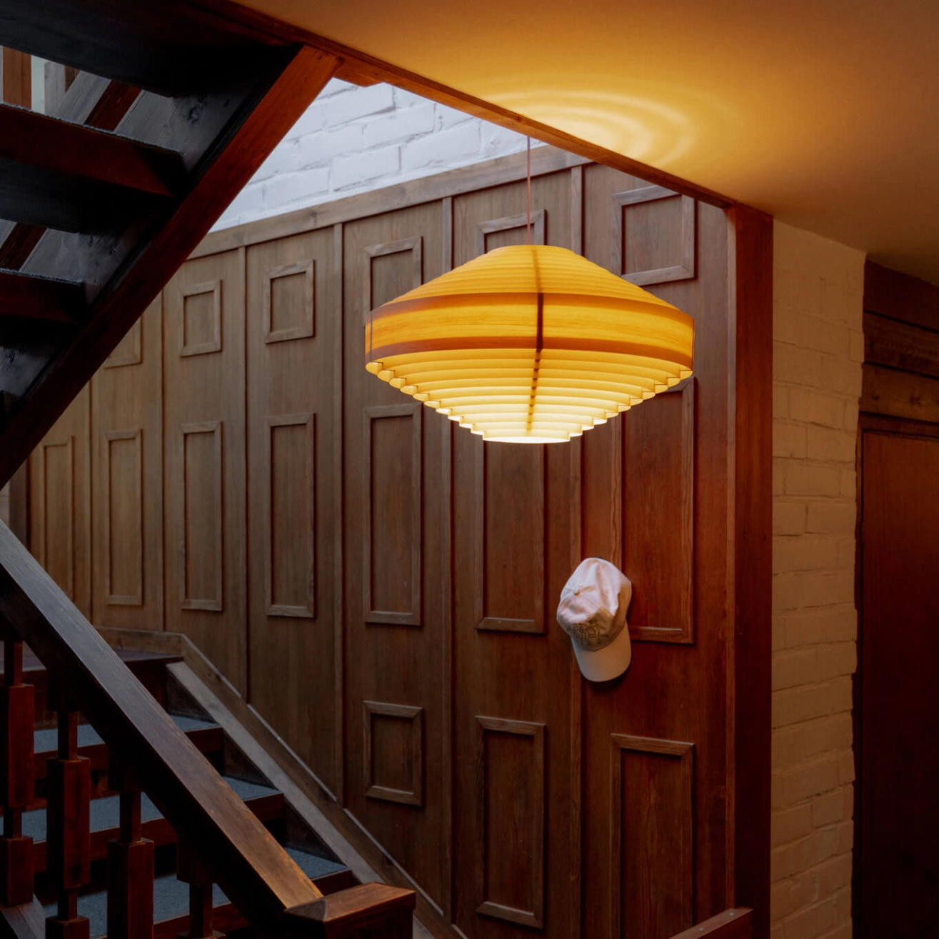 Vaarnii signe la renaissance d’une icône du design scandinave avec la suspension Hans, inspirée des créations lumineuses de Hans-Agne Jakobsson. Alliant bois massif et placage de pin finlandais, ce luminaire fabriqué à la main à partir de matériaux naturels, met en valeur la beauté brute et le grain expressif du pin, dans une forme graphique et aérienne. Les fines lamelles circulaires de Hans filtrent la lumière pour créer une ambiance chaleureuse et apaisante, tandis que la structure en pin massif assure solidité sans alourdir l’ensemble. Fidèle à l’esprit des années 1960, la suspension Hans de Vaarnii rééditée incarne un équilibre subtil entre esthétique rétro et exigence contemporaine.