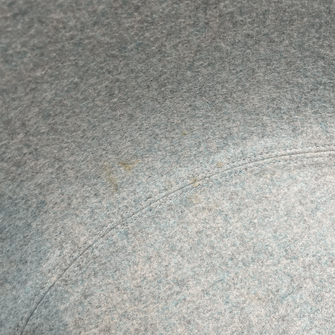 Petites tâches colorées sur le tissu de revêtement d'assise, égratignures sur les pieds