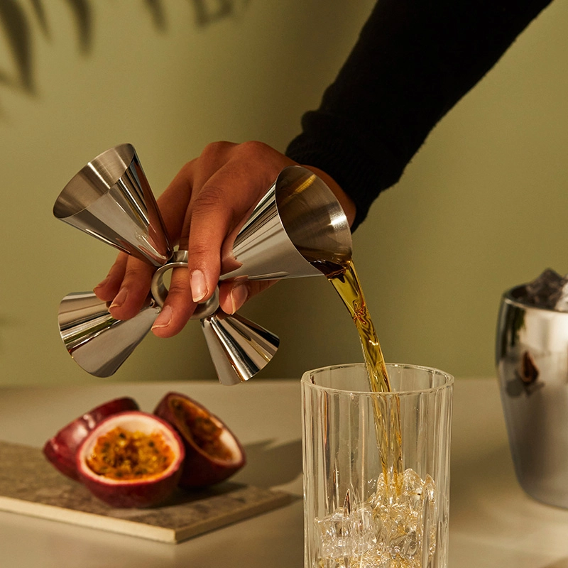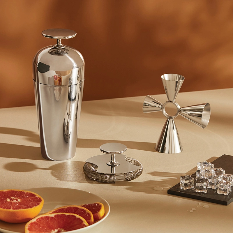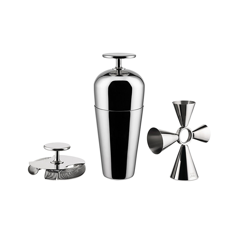 Pour répondre aux tendances de la mixologie contemporaine, qui privilégient le shaker parisien aux autres types de shakers, Giulio Iacchetti le réinterprète ici sous la forme de la «Parisienne», qui impose un nouveau standard en termes de facilité d’usage. La passoire est équipée d’un double ressort, qui permet aux mixologues de laisser libre cours à leur imagination en choisissant la filtration la plus adaptée pour présenter leurs préparations sous le meilleur jour. Enfin pour faciliter les dosages, Giulio Iacchetti a disposé autour d’un anneau les quatre mesures traditionnellement employées dans la préparation des cocktails. Le coffret The Tending Box Aless a été créé aussi bien pour les mixologues experts, afin de perfectionner leurs préparations grâce à des ustensiles au design innovant et professionnel, que pour tous les amateurs qui y trouveront l’assurance et la facilité d’usage qu’ils recherchent.