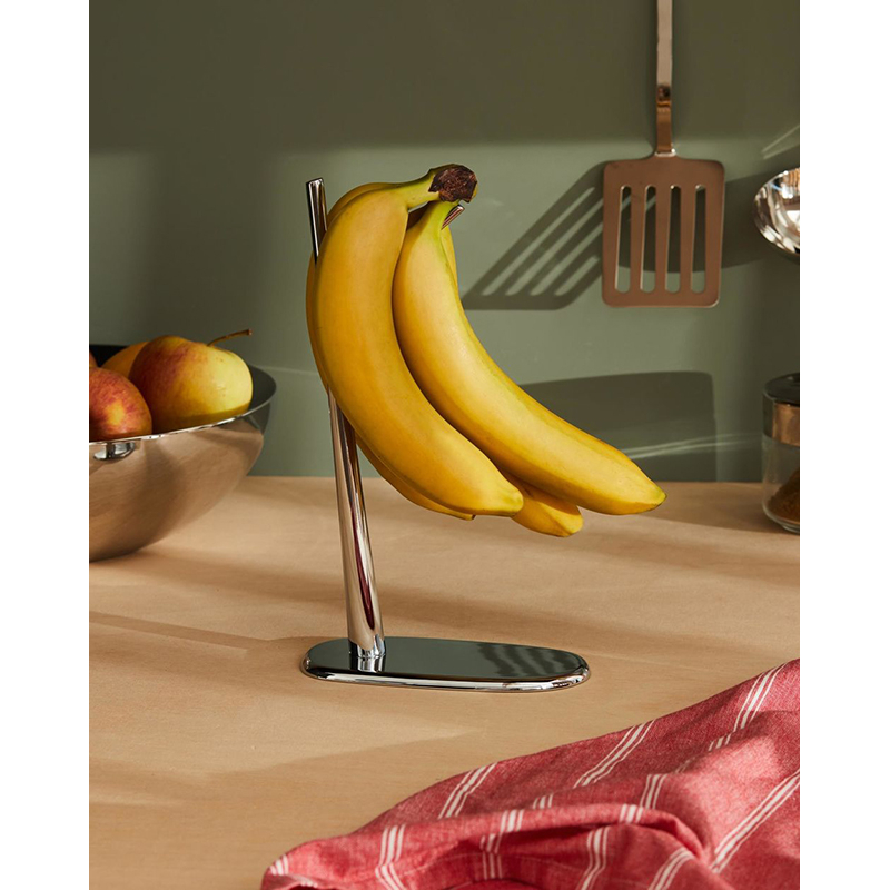 Le porte-bananes Dear Charlie, du designer John Truex et édité par Alessi, se démarque par son design original en forme de branche. Il permet aux bananes de ne pas rentrer en contact avec le gaz que peuvent émettre les autres fruits et donc de se conserver plus longtemps. La base du porte-bananes Dear Charlie est faite de caoutchouc ce qui permet de garantir une bonne stabilité sur toutes les surfaces. Ce produit peut également servir comme support à d’autres fruits comme des grappes de raisins, une botte de piments ou encore une tresse d’ail. Il peut aussi servir comme porte bijoux. Leporte-bananes Dear Charlie Alessi objet élégant sculptural et polyvalent.