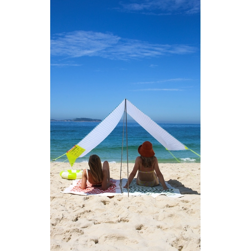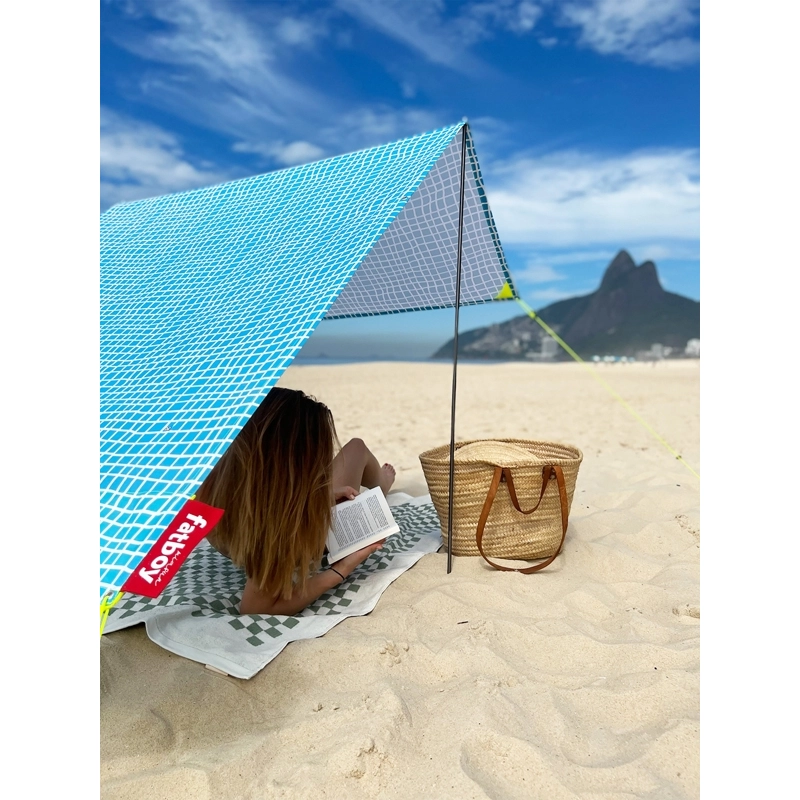 Le pare-soleil portable Miasun de Fatboy fait pencher la balance à un peu plus d'un kilo, de sorte qu'il se glisse facilement dans n'importe quel sac ou valise. Avec Miasun, créez votre propre protection en 90 secondes seulement où vous voulez : sur la plage, dans le parc ou dans votre propre jardin. Cette tente de plage se compose de poteaux pliants en aluminium et d'une toile de coton pour vous protéger du soleil, tout en laissant passer la bise rafraîchissante. La toile est fixée par des sardines plantée dans le sol. Cette tente de plage ultra-intelligente est assez grande pour accueillir deux adultes et deux enfants. Que l'on soit assis ou allongé. La tente peut être montée de 3 façons différentes et offre jusqu'à 3m² d'ombre. Conseils lavage : Cycle de lavage à 30 °C uniquement. Tous les cordons et piquets de tente doivent être retirés de la toile avant de la mettre à la machine à laver. Sécher à l'air libre. Ne pas sécher en machine. Ne pas repasser. Les couleurs de la toile de coton s'estomperont avec le temps, l'utilisation et le lavage.