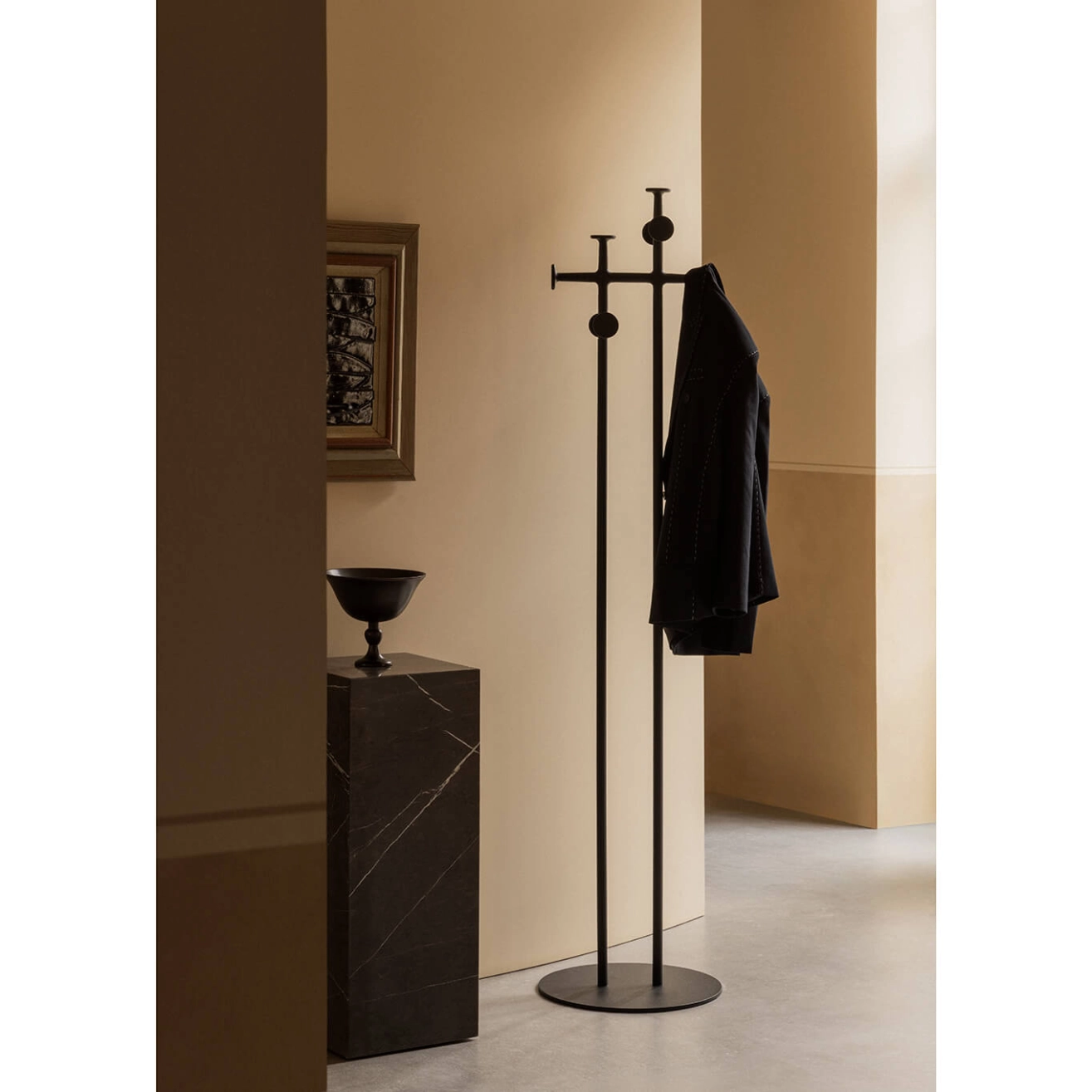 Dans une entrée résidentielle, un bureau, un hôtel ou un espace d’accueil, le porte-manteau Afteroom trouve naturellement sa place. Il permet d’organiser manteaux, vestes ou accessoires tout en participant à la mise en scène de l’espace. Grâce à sa structure élancée, il apporte une solution de rangement pratique sans encombrer visuellement l’environnement, devenant ainsi un élément à la fois utile et décoratif dans les projets d’aménagement contemporains.