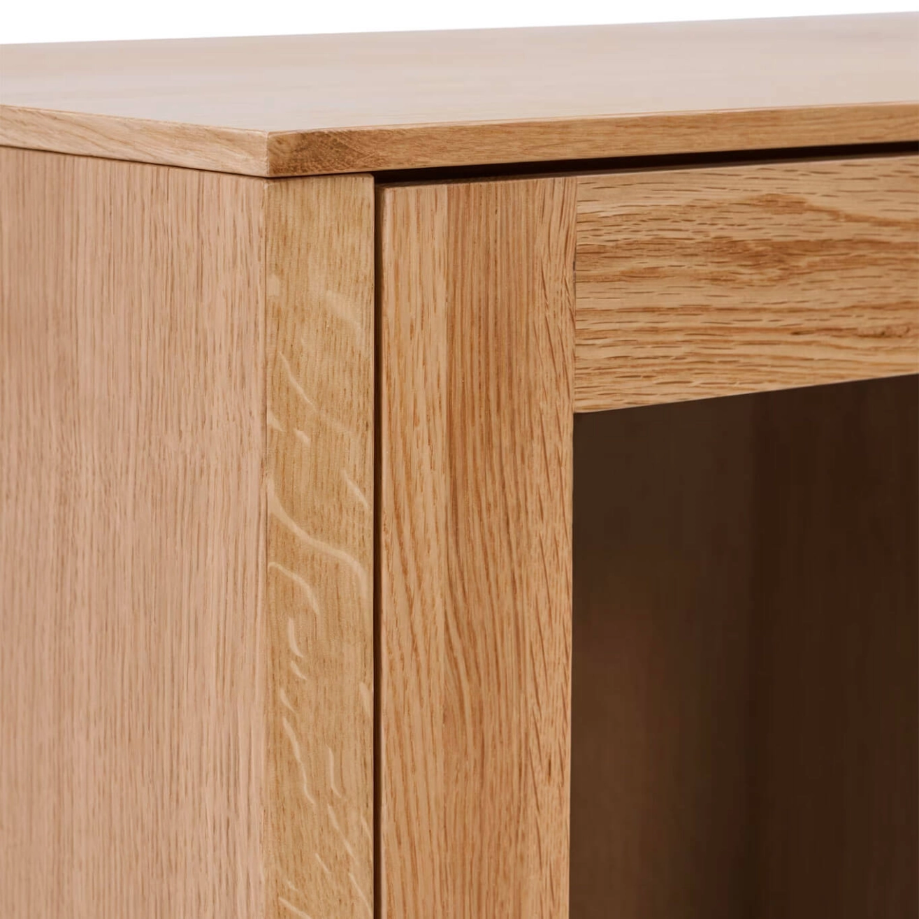 Alguema est un buffet vitrine en placage de chêne finition naturelle de