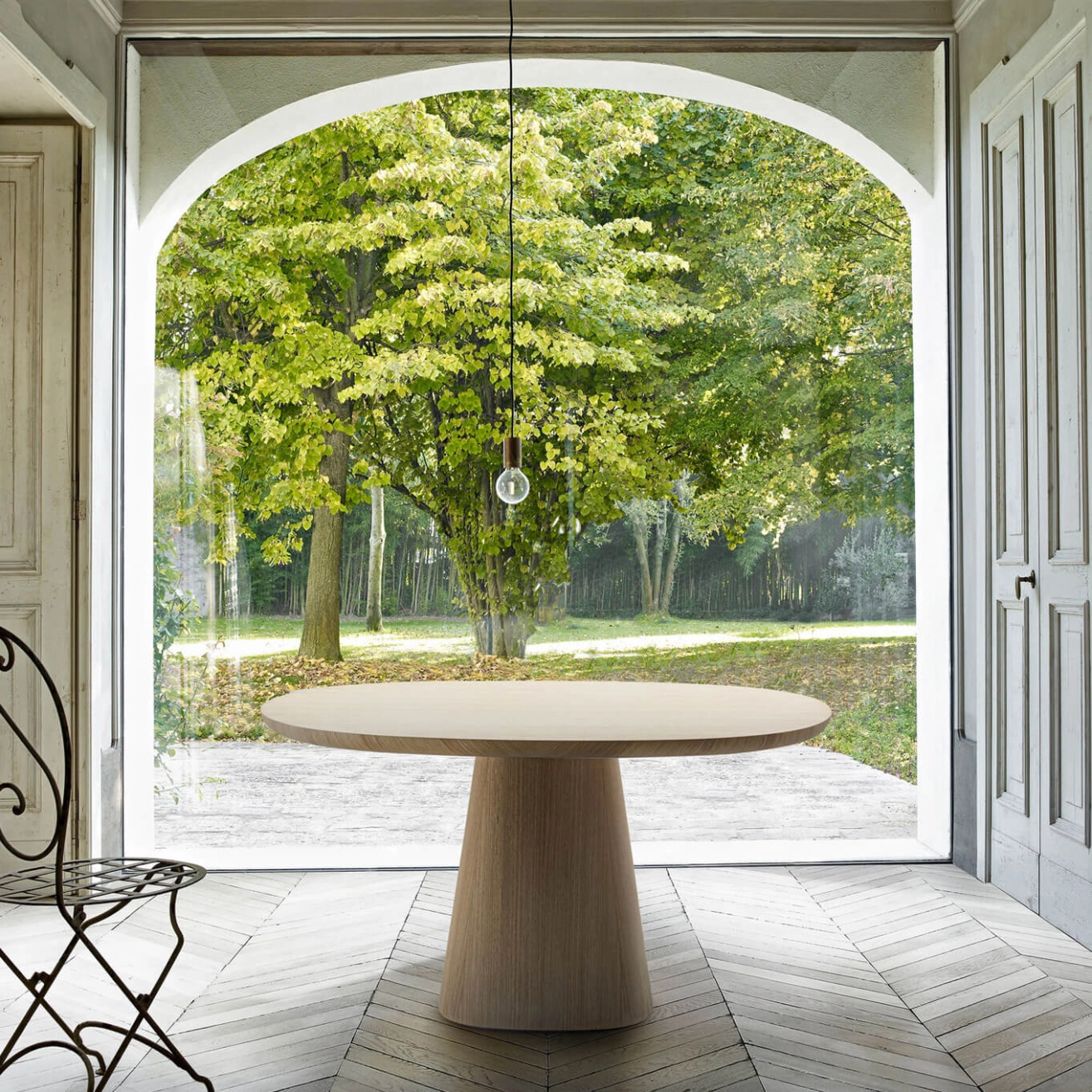 Allure O’ est une table à manger carrée imaginée par la designer Monica Armani et éditée par B&B Italia en 2021. Inspirée par l’élégance iconique de Jackie O., cette pièce incarne une vision contemporaine du glamour à travers un design tout en équilibre et en finesse. Son plateau carré aux courbes douces dialogue harmonieusement avec une base pyramidale tronquée, créant un jeu subtil entre rigueur géométrique et légèreté visuelle. Évoquant les formes elliptiques du miroir Madison – une autre création emblématique de Monica Armani – Allure O’ séduit par son esthétique raffinée et sa structure parfaitement proportionnée. Proposée ici en chêne clair brossé, cette table révèle toute la richesse des matériaux et le savoir-faire exceptionnel de B&B Italia, pour une pièce centrale à la fois fonctionnelle et sculpturale dans un intérieur contemporain.