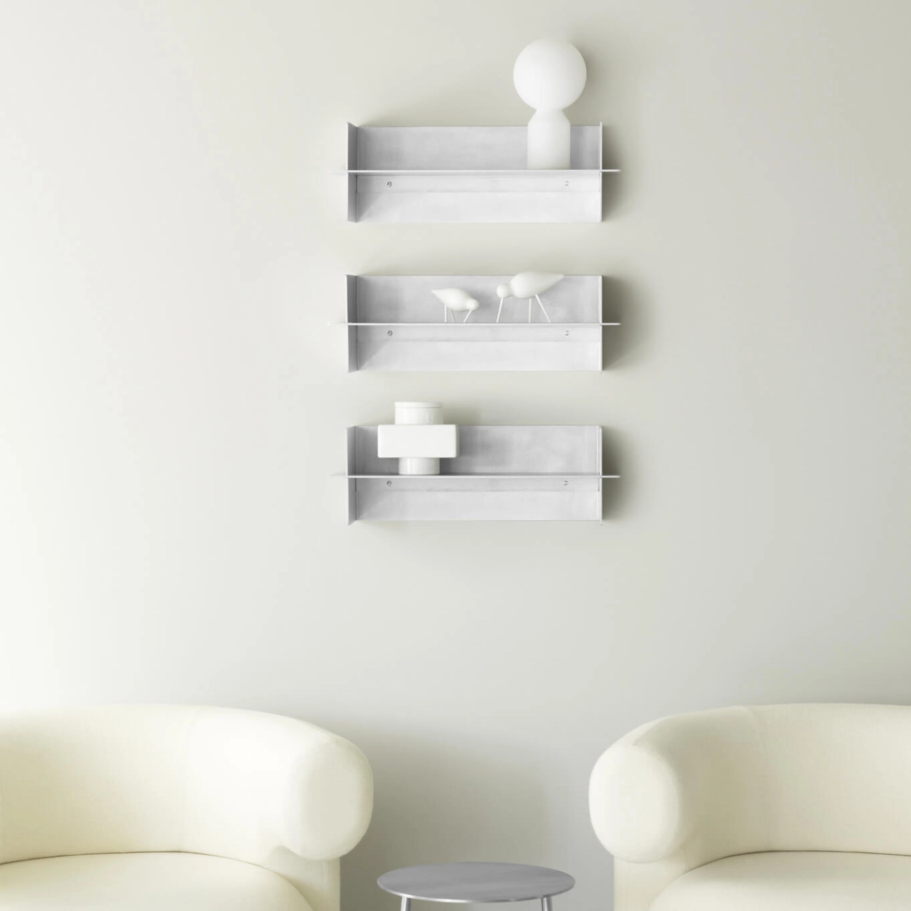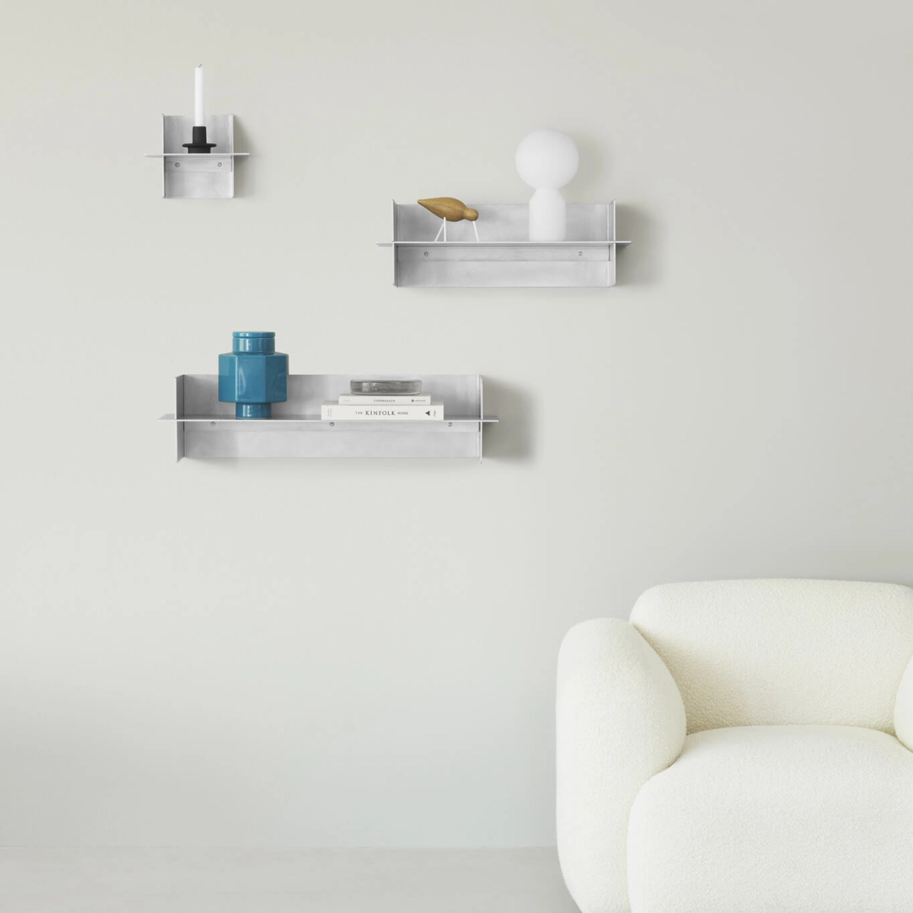 La collection d’étagères Alu, conçue par Simon Legald pour Normann Copenhagen, est fabriqué à partir de deux plaques d’aluminium pliées et emboîtées avec précision, offrant une structure légère, robuste et d’une grande finesse esthétique. Ces étagères jouent subtilement avec les lignes, les ombres et les volumes pour mettre en valeur vos objets personnels sans jamais surcharger l’espace. Compacte, la version Alu 25 cm s’adapte parfaitement aux petits espaces ou aux compositions modulaires, tandis que les modèles 60 et 80 cm proposent davantage de surface pour exposer livres ou objets décoratifs, seuls ou en installation murale combinée. Cette collection Alu minimaliste et raffinée de Normann Copenhagen incarne l’équilibre parfait entre simplicité, qualité de fabrication et polyvalence.