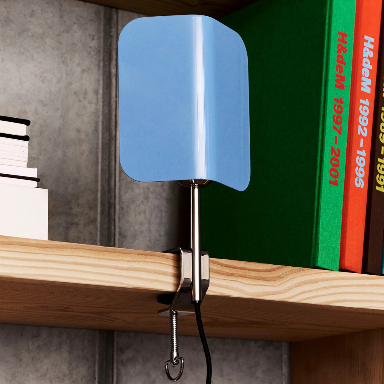 S’inspirant de la lampe classique de banquier, le designer John Tree fusionne des références archétypales avec sa sensibilité contemporaine pour créer la lampe Apex. L’abat-jour en acier plié crée une silhouette de toit pointu, offrant un contraste graphique avec la base chromée. La lampe Apex Clip est dotée d’une pince réglable, pour fixer la lampe sur une surface horizontale ou verticale. L’abat-jour peut pivoter à 360°, permettant à l’utilisateur de diriger la lumière comme il le souhaite. Editée par Hay, Apex Clip est une lampe fonctionnelle, parfaite pour une multitude d’espaces et utilisations.