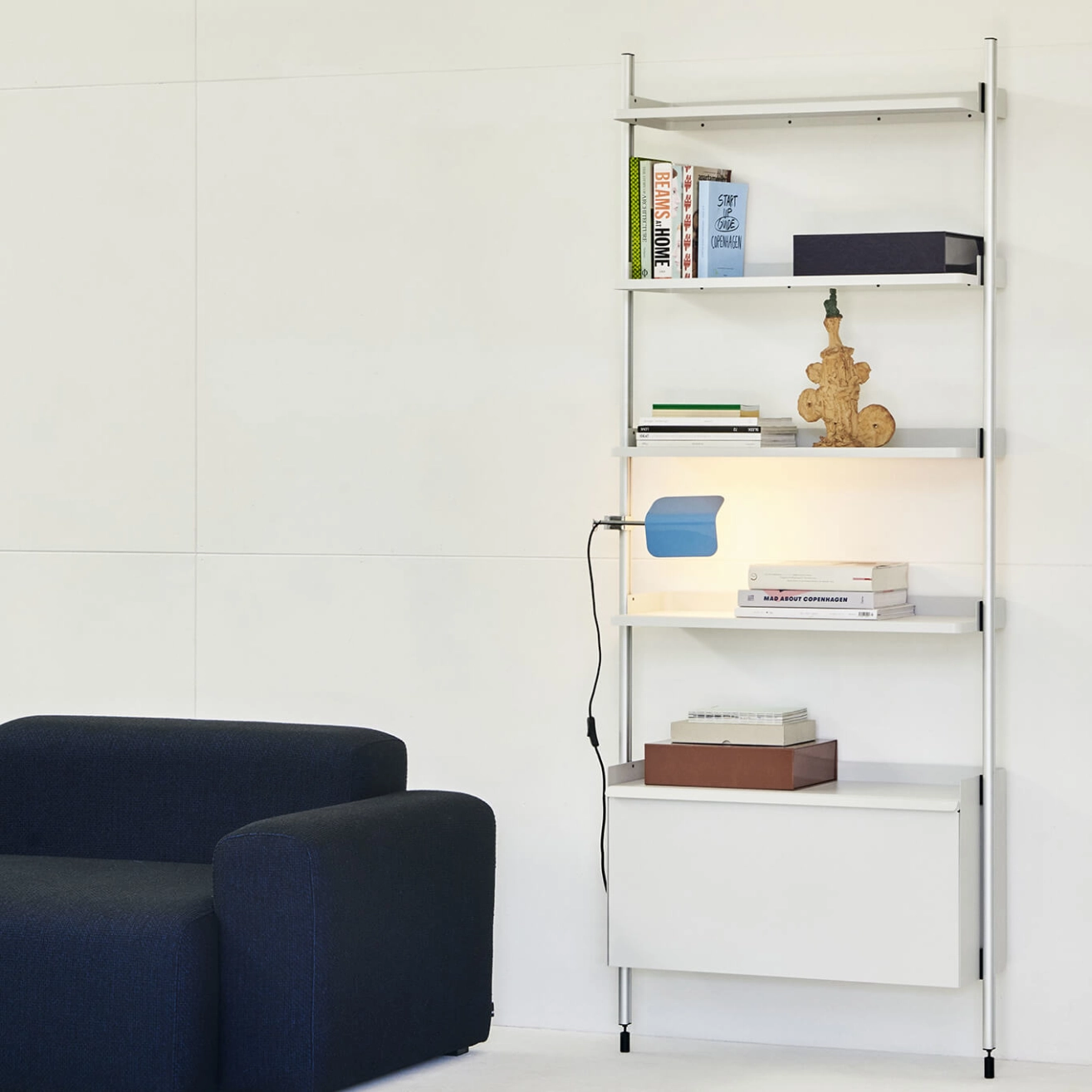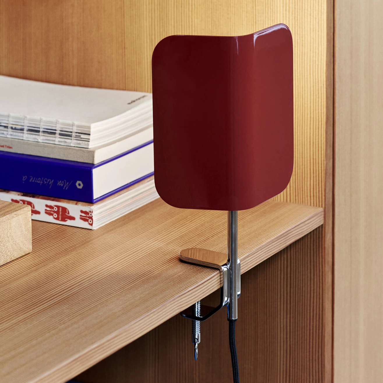 S’inspirant de la lampe classique de banquier, le designer John Tree fusionne des références archétypales avec sa sensibilité contemporaine pour créer la lampe Apex. L’abat-jour en acier plié crée une silhouette de toit pointu, offrant un contraste graphique avec la base chromée. La lampe Apex Clip est dotée d’une pince réglable, pour fixer la lampe sur une surface horizontale ou verticale. L’abat-jour peut pivoter à 360°, permettant à l’utilisateur de diriger la lumière comme il le souhaite. Editée par Hay, Apex Clip est une lampe fonctionnelle, parfaite pour une multitude d’espaces et utilisations.