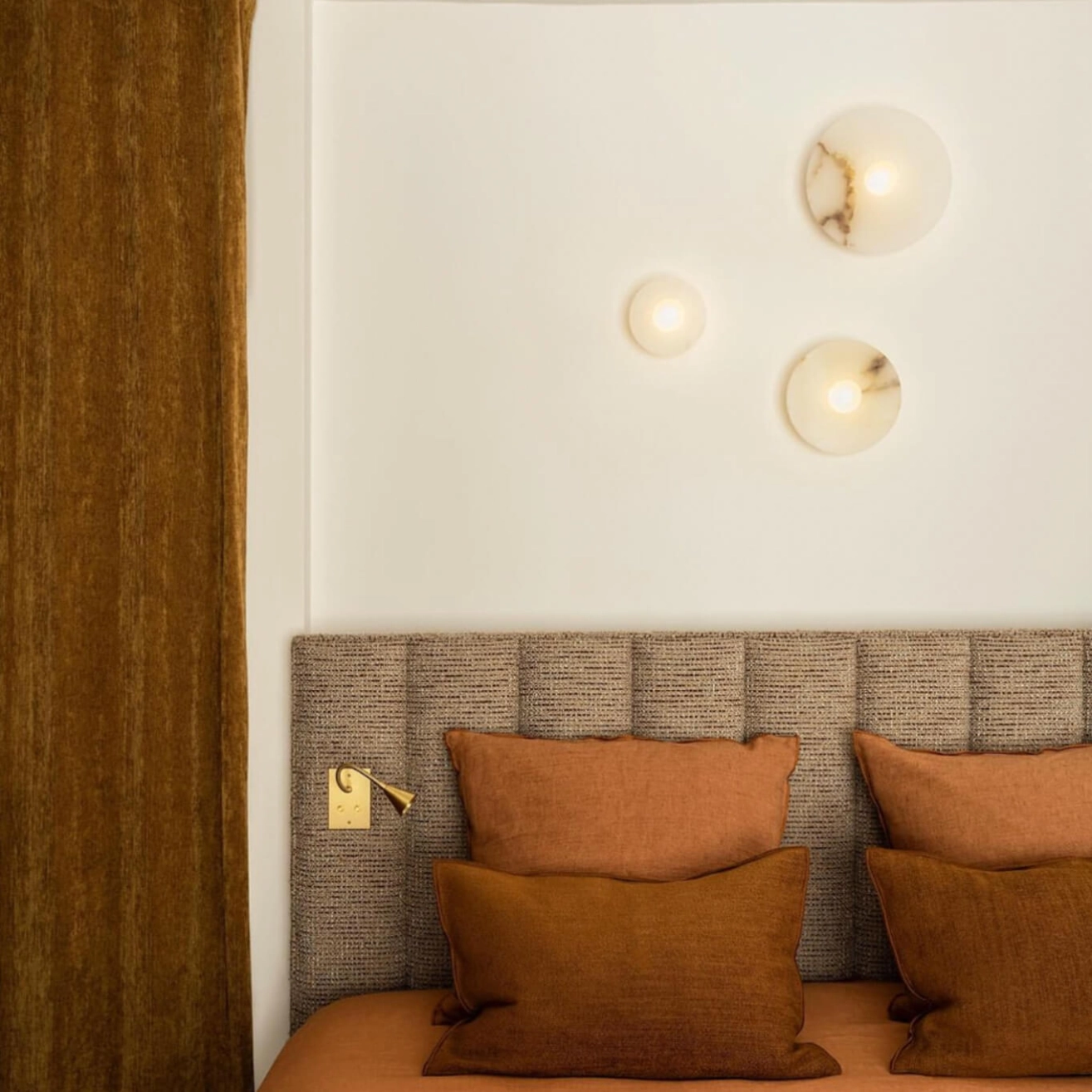 L’applique Alba Simple Wall Alabaster est une création du studio espagnol Contain, fondé à Majorque par les designers Mauricio Obarrio et Juan Peralta. Fidèle à l’esthétique minimaliste et architecturale de la marque, cette pièce met à l’honneur l’albâtre, une pierre naturelle reconnue pour sa translucidité et son élégance intemporelle. L’Alba Simple Wall se distingue ainsi par son travail subtil de la matière, où chaque détail révèle la singularité de la pierre. Chaque applique est unique : le client peut choisir une version aux veinures apparentes, révélant toute la richesse et le caractère de la matière, ou préférer une finition blanc pur, plus homogène et épurée, pour un rendu résolument contemporain. Grâce à la diffusion douce et homogène qu’offre l’albâtre, la lumière devient chaleureuse et enveloppante, créant une atmosphère raffinée aussi bien dans un intérieur résidentiel que dans un espace hôtelier ou contract. Véritable pièce sculpturale, l’Alba Simple Wall incarne la philosophie de Contain : associer matières naturelles, lignes essentielles et fabrication soignée pour proposer un luminaire à la fois fonctionnel et profondément esthétique.