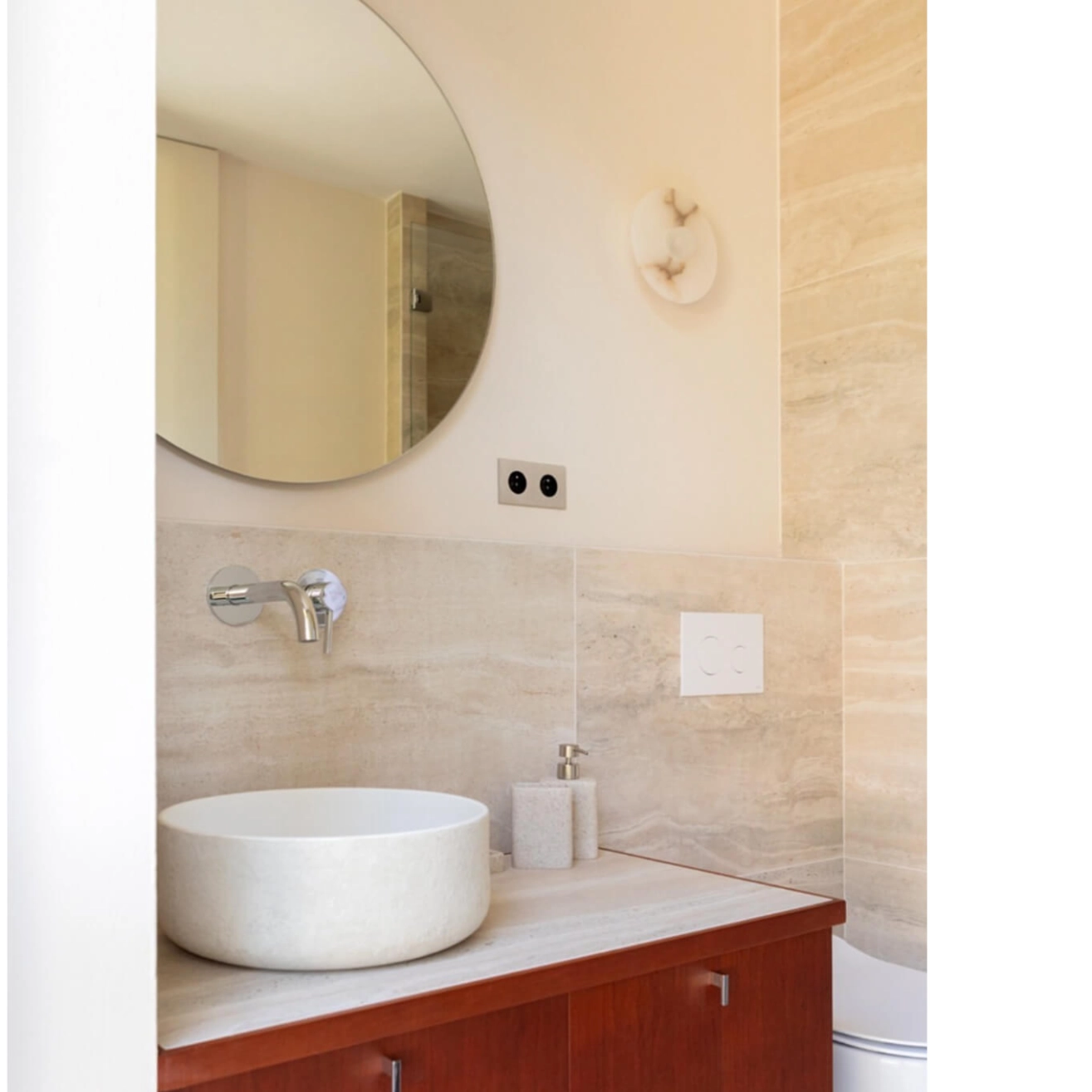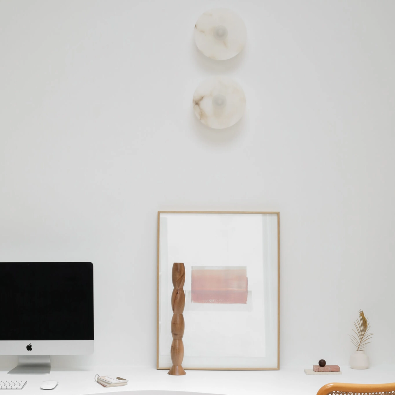 L’applique Alba Simple Wall XL Alabaster est une création du studio espagnol Contain, fondé à Majorque par les designers Mauricio Obarrio et Juan Peralta. Fidèle à l’esthétique minimaliste et architecturale de la marque, cette pièce met à l’honneur l’albâtre, une pierre naturelle reconnue pour sa translucidité et son élégance intemporelle. L’Alba Simple Wall XL se distingue ainsi par son travail subtil de la matière, où chaque détail révèle la singularité de la pierre. Chaque applique est unique : le client peut choisir une version aux veinures apparentes, révélant toute la richesse et le caractère de la matière, ou préférer une finition blanc pur, plus homogène et épurée, pour un rendu résolument contemporain. Grâce à la diffusion douce et homogène qu’offre l’albâtre, la lumière devient chaleureuse et enveloppante, créant une atmosphère raffinée aussi bien dans un intérieur résidentiel que dans un espace hôtelier ou contract. Véritable pièce sculpturale, l’Alba Simple Wall XL incarne la philosophie de Contain : associer matières naturelles, lignes essentielles et fabrication soignée pour proposer un luminaire à la fois fonctionnel et profondément esthétique.
