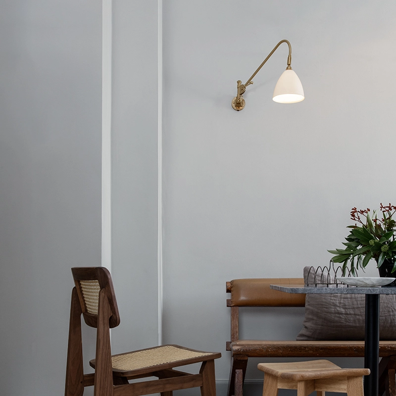 L'applique intemporelle BL6 a été conçue en 1930 par Robert Dudley Best, un designer britannique fortement influencé par l'école du Bauhaus. Le design de la lampe Bestlite a d'abord été adopté par les garages et les services techniques de la Royal Air Force en raison de sa grande fonctionnalité. La demande du public pour les lampes Bestlite a rapidement suivi et, lorsque Winston Churchill a personnellement choisi la lampe de table Bestlite BL1 pour son bureau, le statut iconique de Bestlite a été obtenu. Ce classique contemporain fait aujourd'hui partie des collections permanentes du Victoria & Albert Museum et du Design Museum de Londres. En production continue depuis son origine, la lampe murale Bestlite BL6 reste fidèle à ses racines industrielles et à son design original. Avec son bras mobile et son abat-jour, l'applique éditée par Gubi est parfaite pour le couloir, près du bureau, comme lampe de chevet ou dans la cuisine où la lumière doit être dirigée.