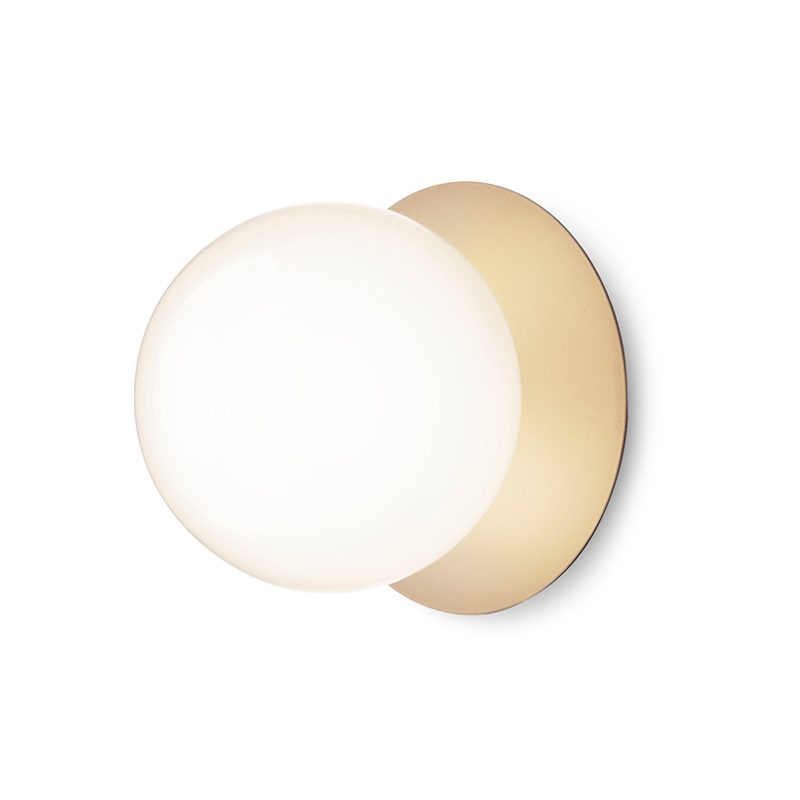 lampe Liila consiste en une feuille de métal ronde associée à une sphère en verre soufflé finition blanc opalin ou transparent avec un motif en relief. La version en verre transparent avec motif en relief crée des jeux de lumière scintillants, tandis que le modèle blanc opalin émet une lumière tout en douceur. Disponible en deux tailles, la