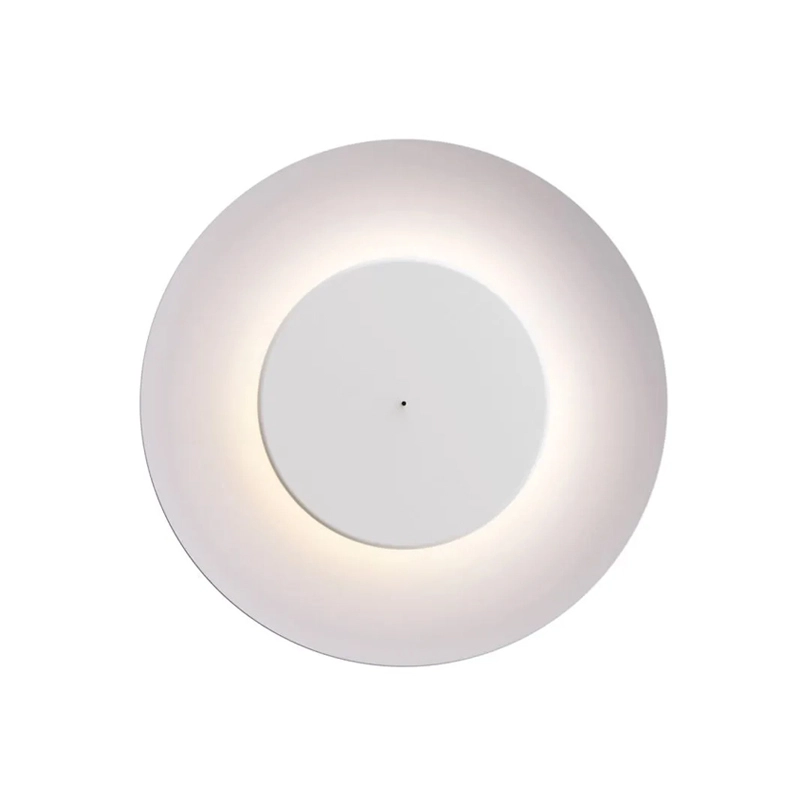 Lunaire de Fontana Arte est une applique murale et un plafonnier qui produit un effet lumineux surprenant, rappelant le phénomène produit par les éclipses. Un petit disque frontal contenant la source lumineuse est placé à l'intérieur d'un grand diffuseur concave en aluminium. Deux effets différents sont possibles selon la position du petit disque par rapport au diffuseur : un éclairage vers l'arrière lorsque le disque frontal est fermé, c'est-à-dire poussé vers le mur, ou de l'intérieur du diffuseur lorsque le disque est tiré vers l'avant. Il suffit de tirer ou de pousser la tige à l'avant du disque pour modifier immédiatement l'émission lumineuse en fonction des besoins. Grâce au grand diamètre du diffuseur, Lunaire est la solution d'éclairage parfaite pour les grandes surfaces, qu'elles soient résidentielles ou contractuelles.