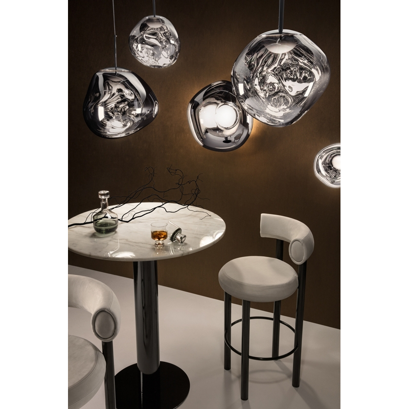 Née de la collaboration entre Tom Dixon et le studio de design Front, Melt est une collection de luminaires aussi innovante que poétique. L'applique Melt Surface arbore un très beau globe lumineux déformé qui crée un effet saisissant de verre soufflé en fusion. Le diffuseur est translucide lorsqu’il est allumé, tandis qu’il affiche une finition miroir quand il est éteint. L'applique Melt Tom Dixon émet une lumière attirante et légèrement hallucinogène, qui fait penser aux images du cosmos prises par le télescope Hubble. Melt de Tom Dixon est disponible dans différentes finitions raffinées et se décline aussi en suspension et lampe de table.