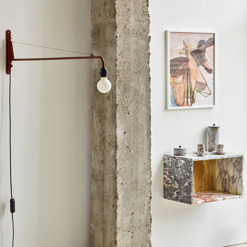 Petite Potence mesure 103 cm de long, avec une finition époxy aux couleurs dérivées des teintes d‘origine utilisées par le designer. Son câble est gainé d‘une enveloppe textile de haute qualité et son ampoule LED est variable. Grâce à son esthétique minimaliste,