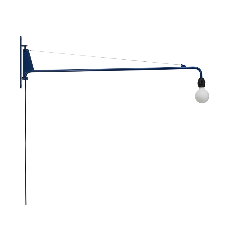 Créée à l'origine pour sa propre maison à Nancy, Jean Prouvé a adapté le design épuré initial de la lampe Potence à d'autres tailles, dont la petite version Petite Potence. Ce luminaire épuré se caractérise par son ampoule simple fixée à une longue barre pivotante en acier, maintenue par un fil d‘acier. Avec des proportions similaires au grand modèle, Petite Potence, éditée par Vitra, est une alternative idéale pour les espaces plus petits. Le bras pivotant de Petite Potence mesure 103 cm de long, avec une finition époxy aux couleurs dérivées des teintes d‘origine utilisées par le designer. Son câble est gainé d‘une enveloppe textile de haute qualité et son ampoule LED est variable. Grâce à son esthétique minimaliste, Petite Potence est une solution d‘éclairage idéale pour une grande variété d‘environnements, des salles à manger et salons aux bureaux et cafés.