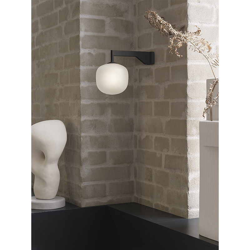 L'applique murale Rime apporte une perspective élégante à la lumière du verre grâce à son verre semi-transparent sablé pour une expression raffinée. Le design présente une forme caractéristique, inspirée de la forme des glands, complétée par la forme géométrique de son bras. L'applique murale Rime dispose d'une source de lumière à intensité variable, permettant à son utilisateur d'ajuster l'intensité lumineuse à ses besoins individuels, que ce soit à la maison, au restaurant ou dans une chambre d'hôtel.