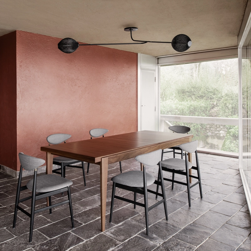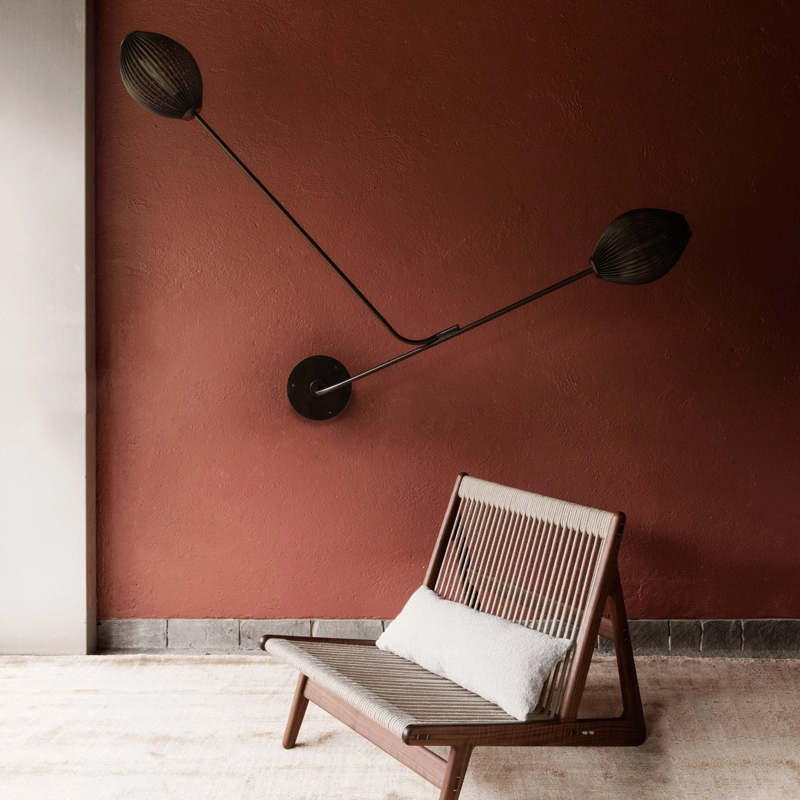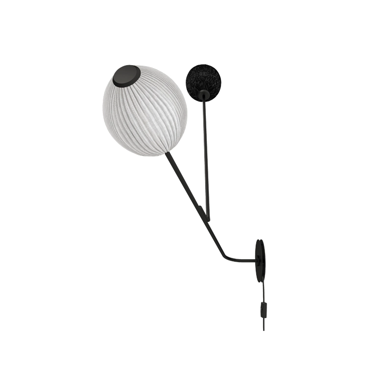 Dessinée en 1953, l’applique Satellite comprend deux diffuseurs réalisés en tôle perforée pliée en accordéon pour obtenir une forme ovoïde, et montés sur deux bras allongés en métal. Près de 70 ans plus tard, Gubi réédite cette pièce sculpturale.