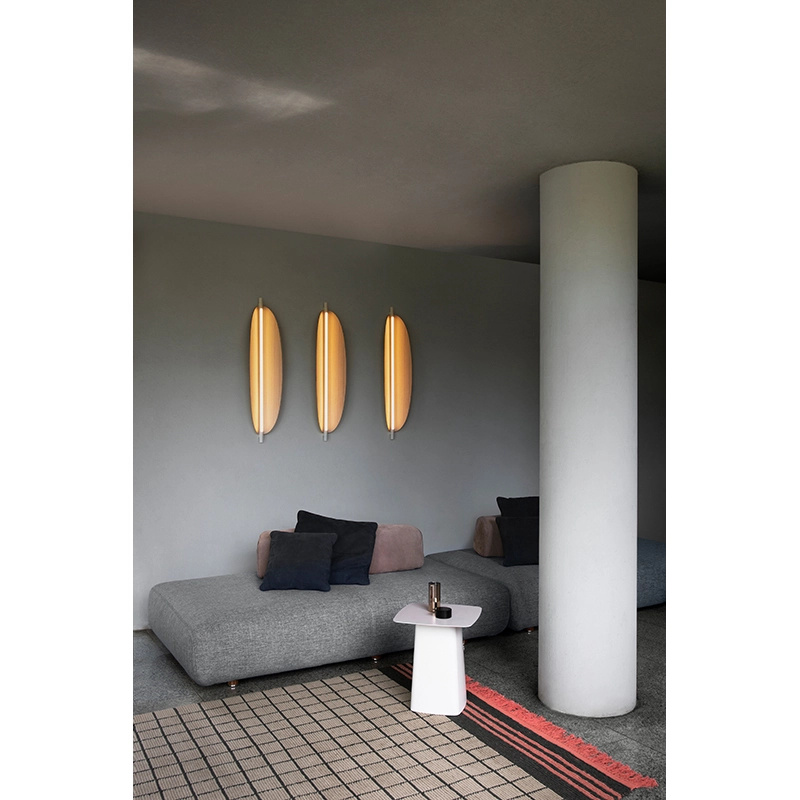 Conçue par Federica Biasi en collaboration avec Tooy, l'applique murale Thula est basée sur un élément central simple et architectural, doté d'une fonction d'éclairage, auquel s'ajoute un composant organique en bois ou en cuir. La source lumineuse de l'applique murale Thula 562.42 est constituée d'une LED linéaire graduable. Disponible en trois tailles, l'applique Thula Tooy peut être installée seule ou en composition de plusieurs éléments pour une mise en scène personnelle.