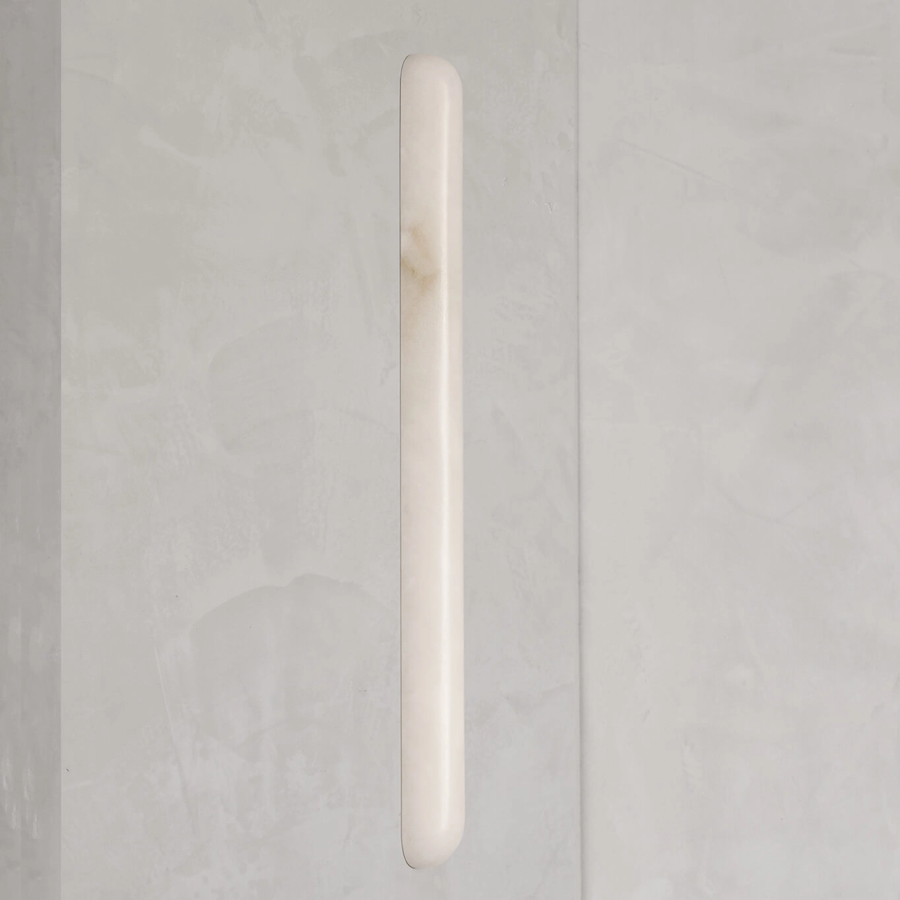 Élancée et architecturale, l’applique Tub 45 Alabaster affirme une présence lumineuse à la fois discrète et sculpturale. Conçue par le studio espagnol Contain, fondé à Majorque par Mauricio Obarrio et Juan Peralta, cette pièce illustre parfaitement la recherche d’équilibre entre matière naturelle et géométrie essentielle. Réalisée en albâtre, pierre noble appréciée pour sa translucidité, la Tub 45 diffuse une lumière douce et homogène qui enveloppe le mur d’un halo chaleureux. Chaque applique est unique : les veinures naturelles peuvent être mises en valeur pour souligner le caractère organique de la pierre, ou sélectionnées dans une version plus blanche et uniforme pour un rendu minimaliste et contemporain. Avec son format vertical de 45 cm, la Tub 45 structure l’espace avec élégance, que ce soit dans un couloir, en tête de lit ou dans un projet hôtelier haut de gamme. Plus qu’un simple luminaire, la Tub 45 Alabaster incarne la philosophie de Contain : sublimer la lumière à travers la pureté des lignes et l’authenticité des matériaux.