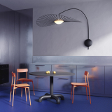 Petite Friture et Constance Guisset, duo complice et exigeant depuis le début, signent un nouveau chapitre de la suspension Vertigo avec Vertigo Nova : des choix techniques audacieux pour une création sophistiquée. Une collection complète de pièces fortes, qui se déclinent en lampadaire, suspension et lampe murale, en noir ou blanc. La grande nappe graphique repose sur un verre soufflé, libérant un éclairage d’une grande douceur et dimmable avec technologie LED intégrée. Vertigo Nova frémit au gré des vibrations de l’air grâce à une structure sinusoïdale en fibre de verre sous-tendue par des rubans assemblés à la main par des artisans qualifiés en France. Vertigo Nova signe l’équilibre parfait entre technologie et élégance. Cette lampe sculpture du nom d’une étoile intrigue par sa ligne et son mouvement, séduit par son allure. « Vertigo Nova est née du désir de travailler la lumière de l’objet pour l’adoucir et la graduer. La partie technique est désormais aspirée dans un verre sablé mystérieux.  La fonction de la lampe est sublimée pour ne laisser apparaître que l’essentiel, une nappe volante entre deux eaux, légère et délicate. »  Constance Guisset. Vertigo Nova signe l’équilibre parfait entre technologie et élégance. Une lampe design singulière propice à la rêverie, incarnant la libre garde et l’exigence défendues par Petite Friture. Il est possible de la brancher sur une prise secteur par le fil fourni.