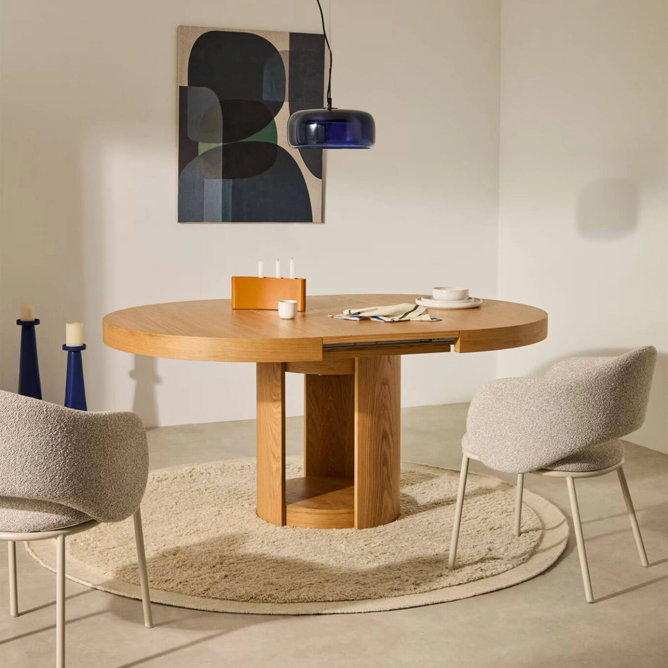 La table Artis de Kave Home allie fonctionnalité et élégance pour optimiser votre espace repas avec style. Dotée d’un plateau rond en placage de peuplier de Ø 120 cm, elle s’intègre harmonieusement dans tous les intérieurs, même les plus restreints. Grâce à son système d’extension papillon intégré et facile à utiliser avec sa poignée en cuir, elle passe rapidement à une longueur de 170 cm, idéale pour accueillir vos convives. Fabriquée en bois certifié FSC 100 % provenant de forêts gérées durablement, la table Artis reflète un engagement fort envers l’environnement. Son design sobre et intemporel, conçu par l’équipe de Kave Home, en fait une pièce maîtresse de la salle à manger, alliant durabilité, esthétique et praticité au quotidien.