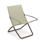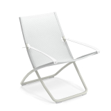 Grandes dimensions et forme sinueuse et enveloppante : telles sont les caractéristiques de Snooze de Chiaramonte & Marin. La structure est en acier tubulaire, disponible en différentes couleurs combinées avec des variantes de tissu. Tous les composants métalliques sont isolés les uns des autres avec des éléments en plastique. Grâce à un mécanisme de réglage de l'accoudoir simple mais original, le siège peut prendre deux positions: la première pour la lecture et la seconde pour le repos.