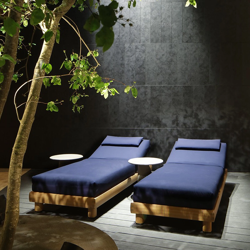 La chaise longue d’extérieur vient compléter la collection Ketch, conçue par Jean-Marie Massaud pour Poliform et inspirée du monde du nautisme. Comme les canapés et les fauteuils, la chaise longue se caractérise également par une structure en iroko solide et essentielle, qui soutient les coussins doux. Le dossier inclinable, rendu encore plus confortable par le coussin repose-tête, dissimule un compartiment fonctionnel pour ranger les serviettes et les accessoires.