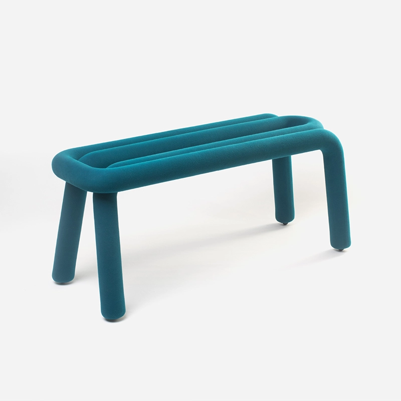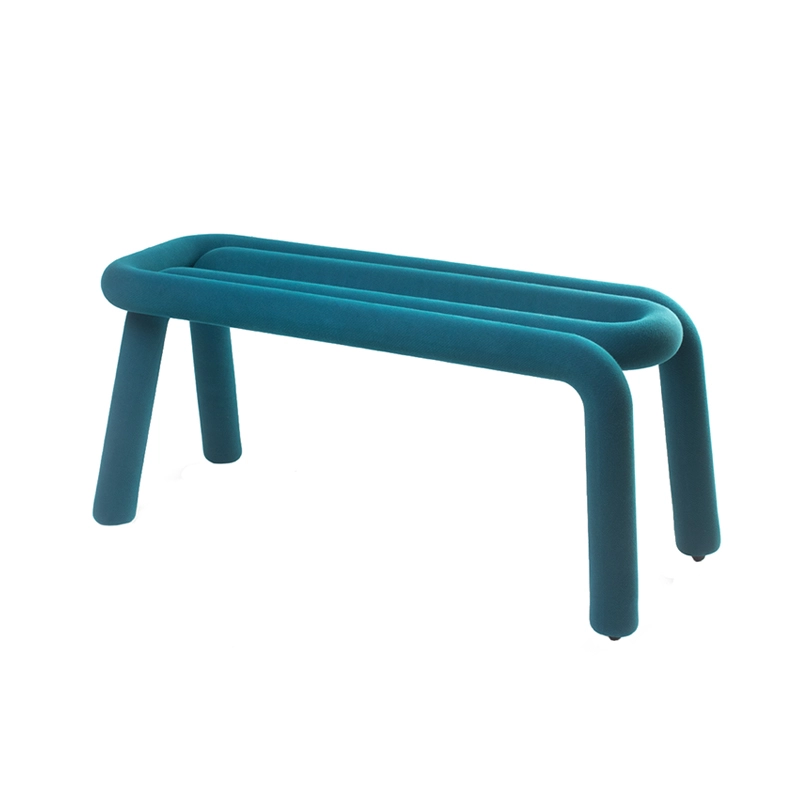 Le banc Bold est la déclinaison de la chaise du même nom, dessinée par Big-Game pour l'éditeur Moustache. Ce petit banc très graphique est composé de deux parties tubulaires en métal imbriquées l'une dans l'autre. La série Bold réactualise ainsi la tradition du siège en tube d'acier. Gonflée d'une épaisse mousse de polyuréthane, la ligne tracée par Bold joue le rôle à la fois de pieds et de siège tout en apportant le confort. Le banc de Moustache est recouvert d'un gainage de textile déhoussable qui se décline en plusieurs coloris. Il apporte une touche graphique étonnante dans une chambre d'enfant ou dans l'entrée.