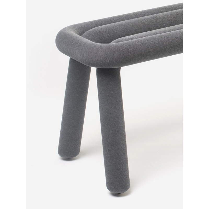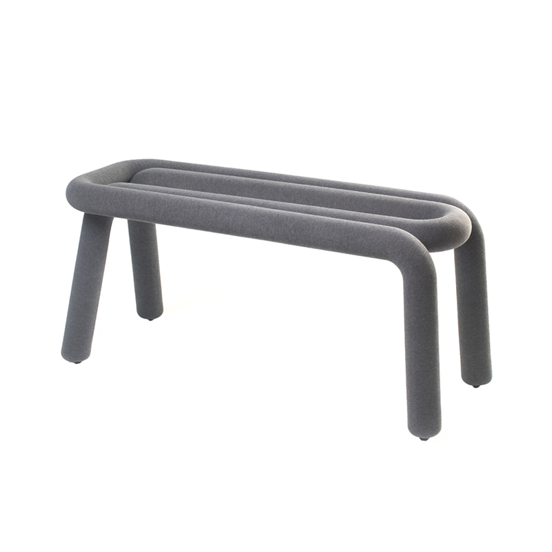 Le banc Bold est la déclinaison de la chaise du même nom, dessinée par Big-Game pour l'éditeur Moustache. Ce petit banc très graphique est composé de deux parties tubulaires en métal imbriquées l'une dans l'autre. La série Bold réactualise ainsi la tradition du siège en tube d'acier. Gonflée d'une épaisse mousse de polyuréthane, la ligne tracée par Bold joue le rôle à la fois de pieds et de siège tout en apportant le confort. Le banc de Moustache est recouvert d'un gainage de textile déhoussable qui se décline en plusieurs coloris. Il apporte une touche graphique étonnante dans une chambre d'enfant ou dans l'entrée.