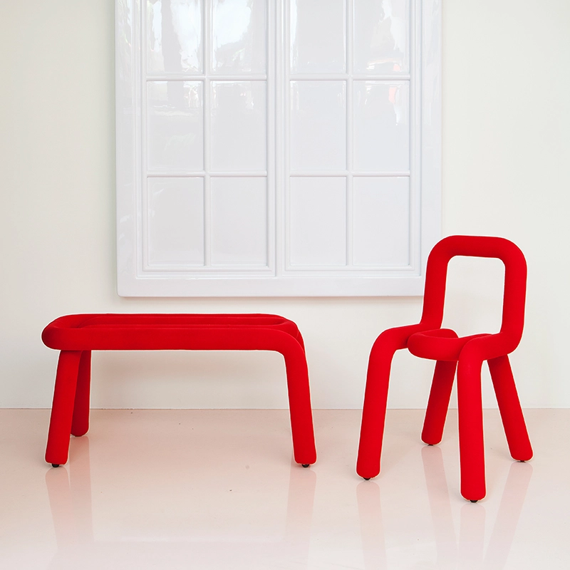 Le banc Bold est la déclinaison de la chaise du même nom, dessinée par Big-Game pour l'éditeur Moustache. Ce petit banc très graphique est composé de deux parties tubulaires en métal imbriquées l'une dans l'autre. La série Bold réactualise ainsi la tradition du siège en tube d'acier. Gonflée d'une épaisse mousse de polyuréthane, la ligne tracée par Bold joue le rôle à la fois de pieds et de siège tout en apportant le confort. Le banc de Moustache est recouvert d'un gainage de textile déhoussable qui se décline en plusieurs coloris. Il apporte une touche graphique étonnante dans une chambre d'enfant ou dans l'entrée.